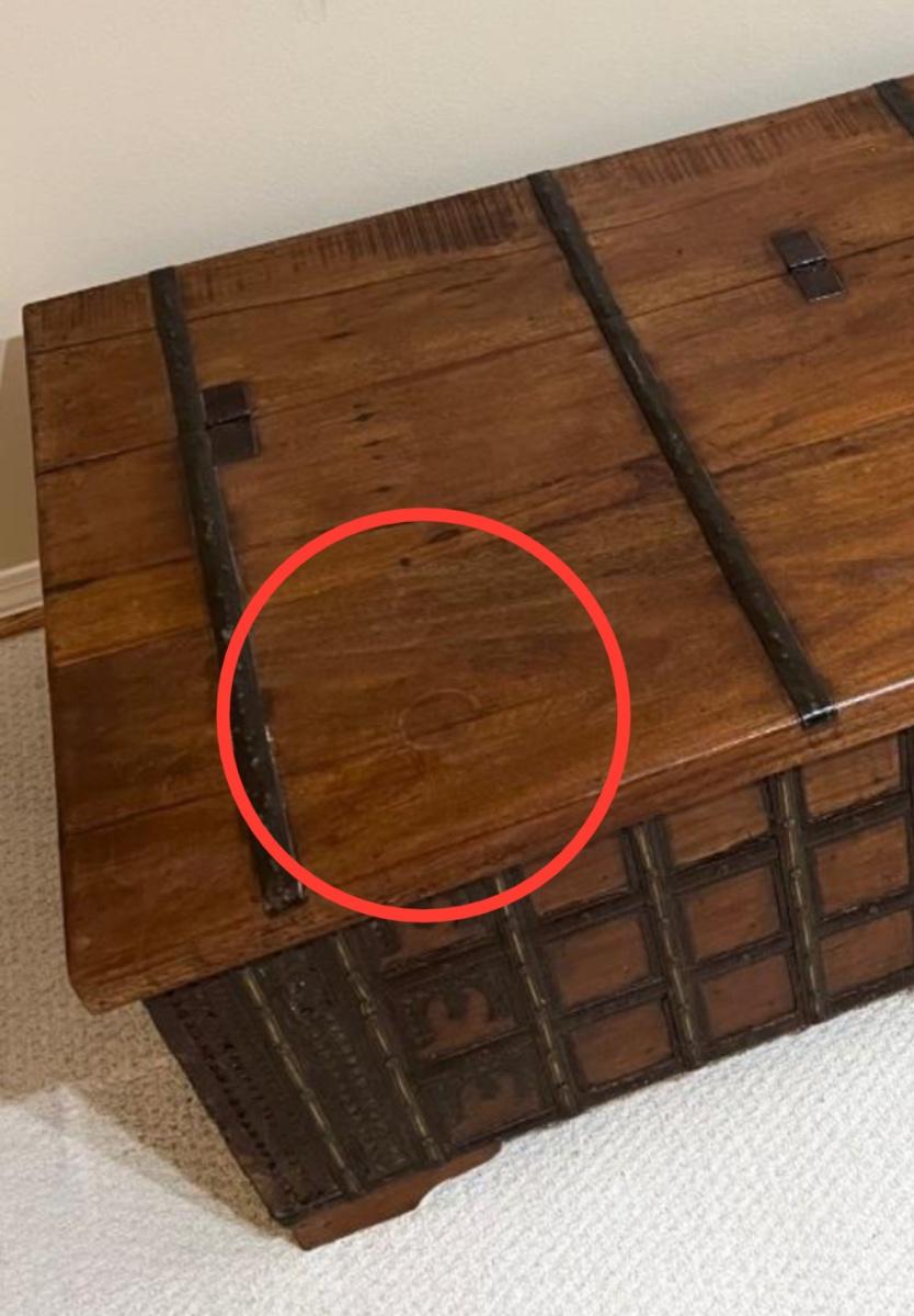 Great Condition ~ Extremely Heavy ~ Lots of Storage ~ Does have a ring on top, see photos ~ 18” H x 56” W x 33” D
