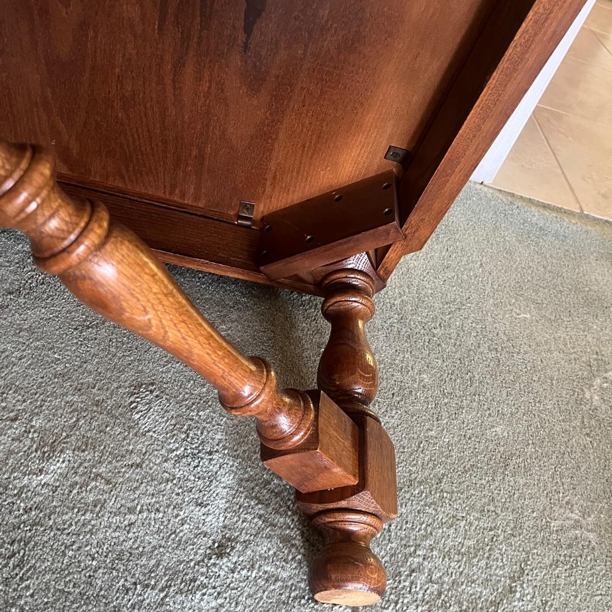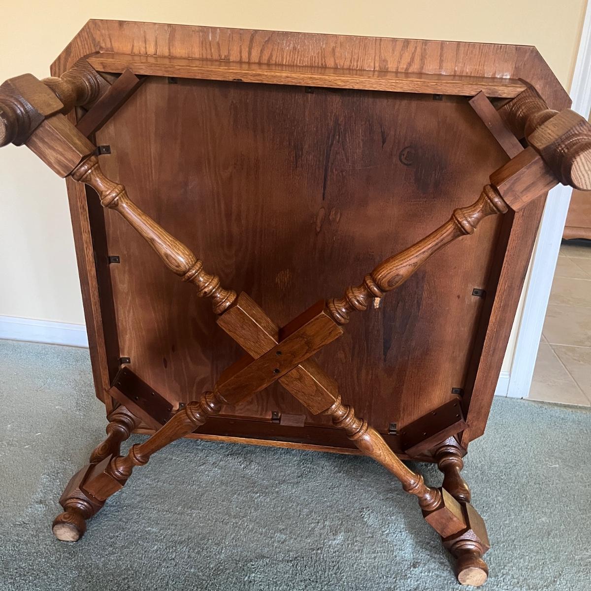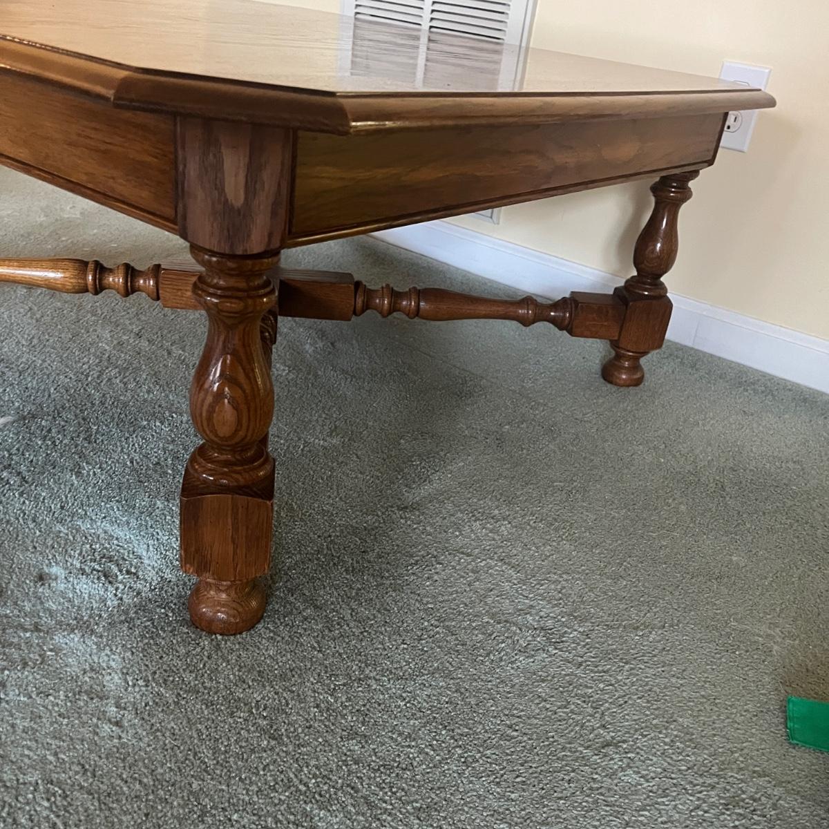 Lot includes a solid wood coffe table that measures 36.5” x 36.5” x 16”H. Brand marking is illegible, see pictures. Table is down one flight of stairs.