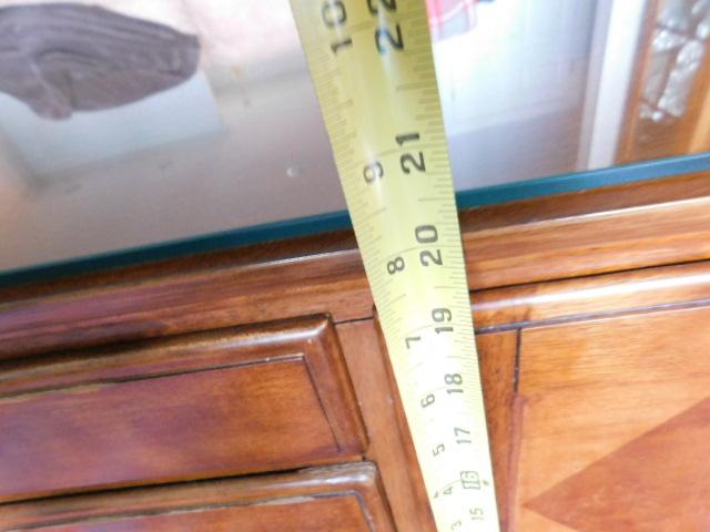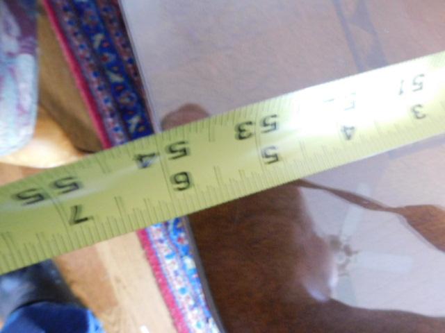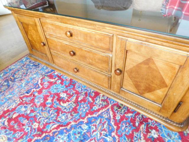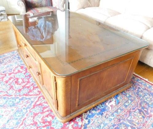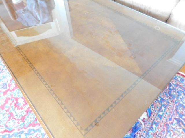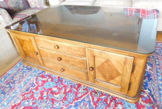 Solid Wood Coffee Table with Protective Glass Top:  54" x 34 1/2" x 20 1/2"