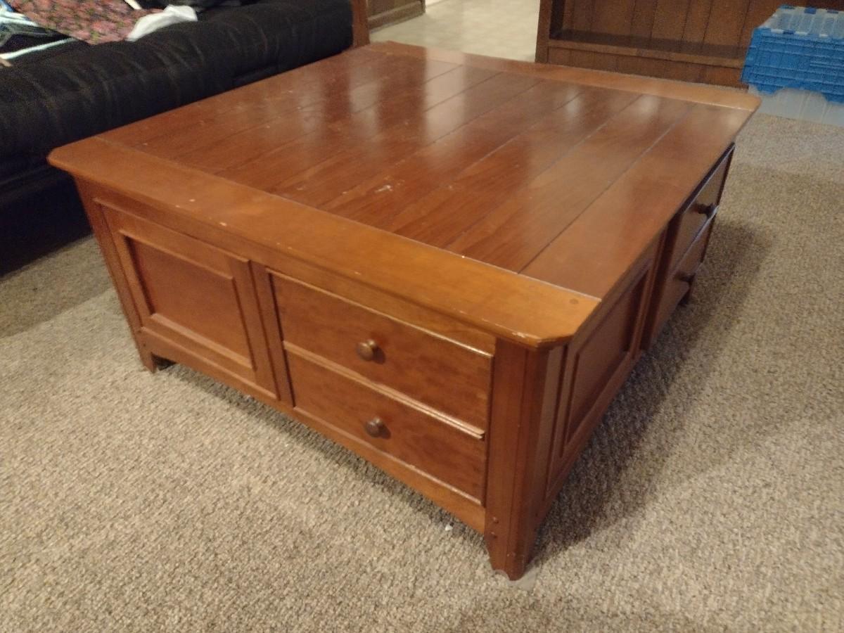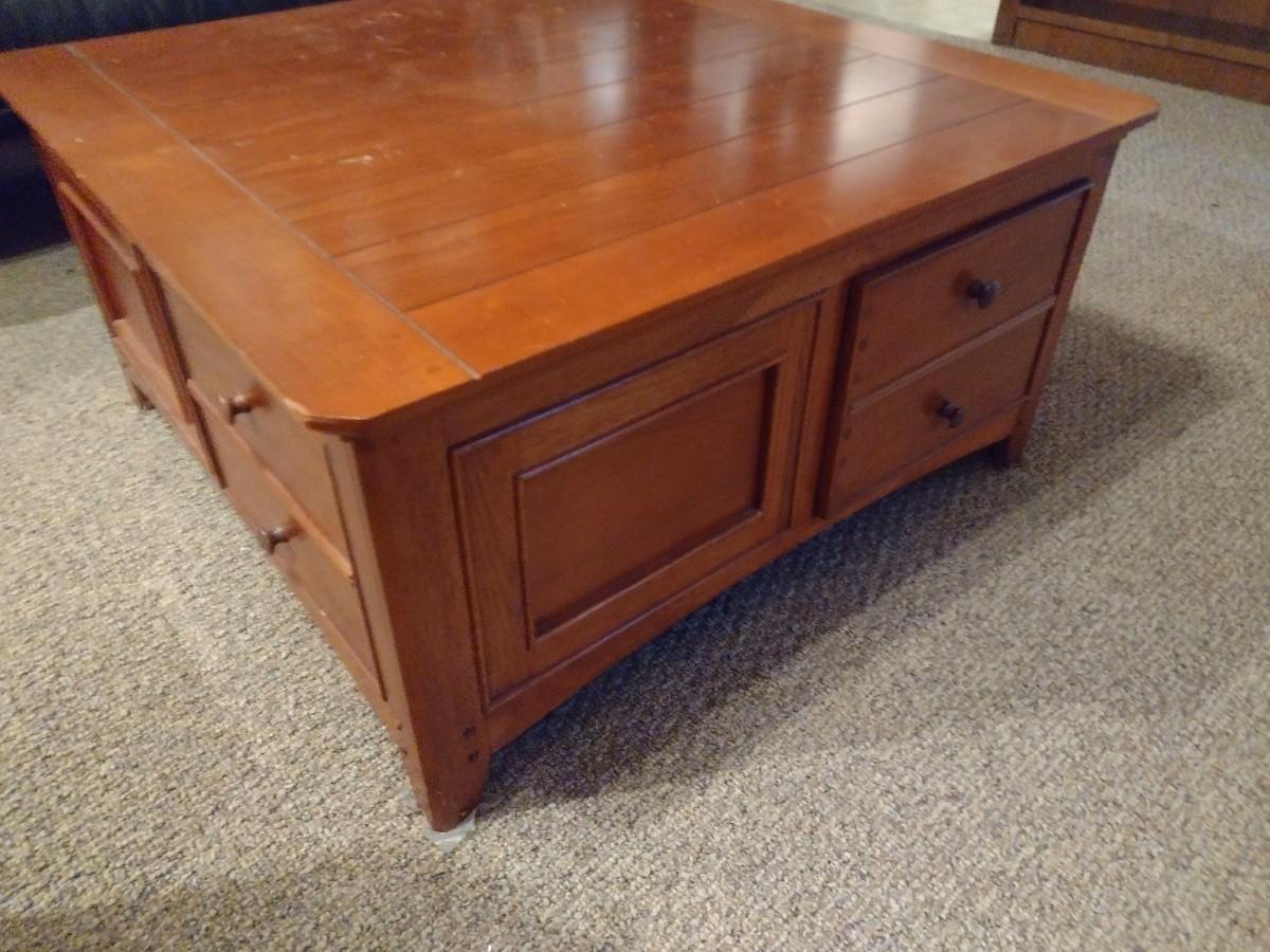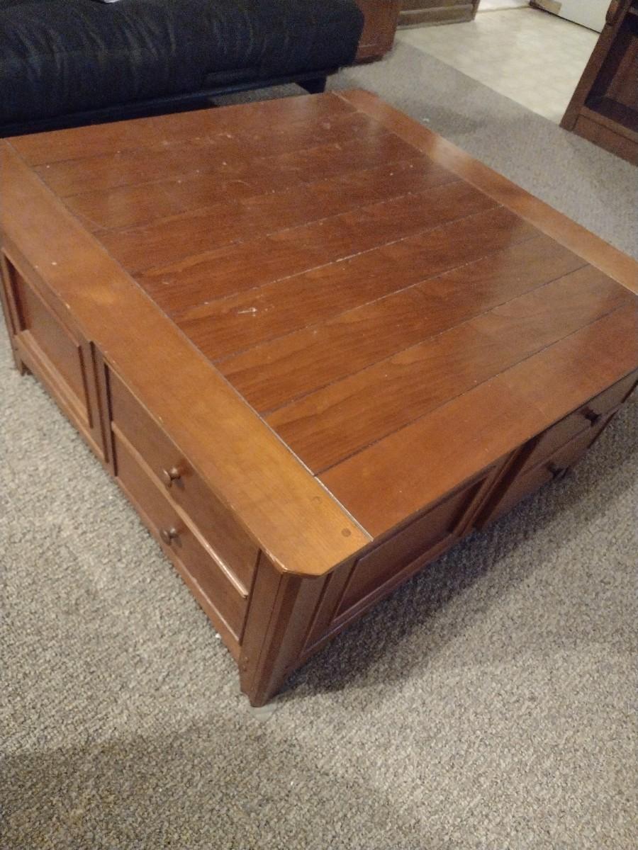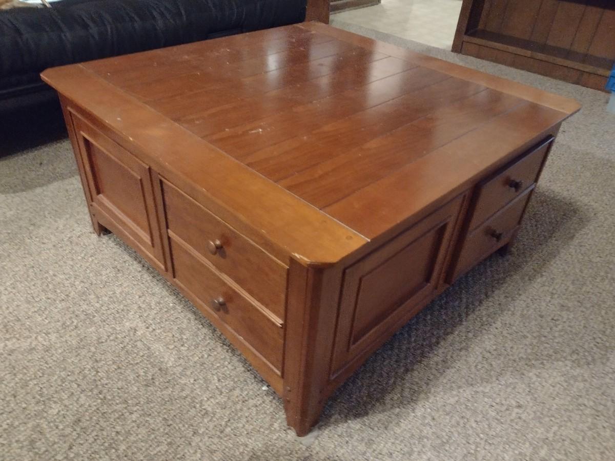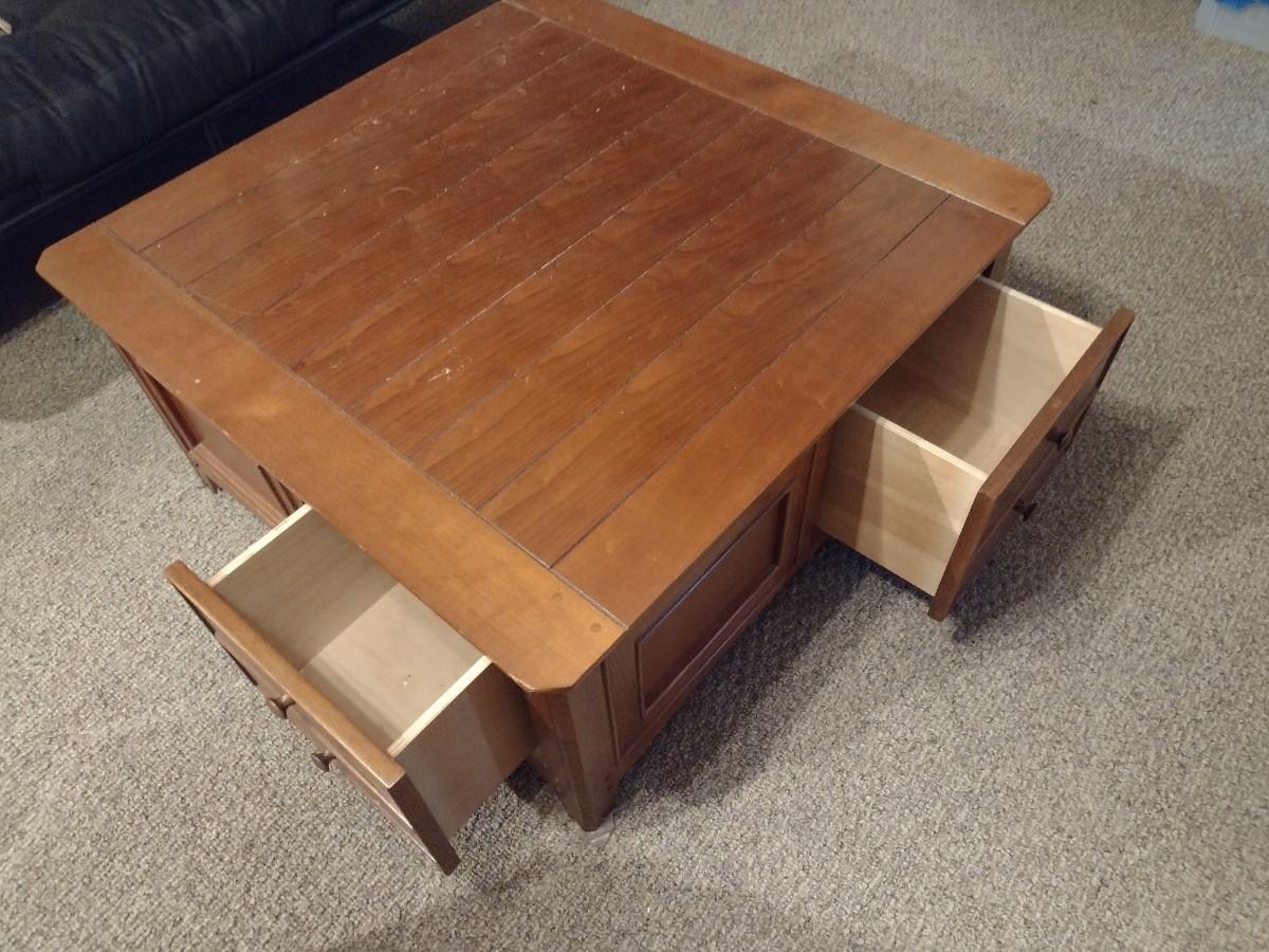 Solid Wood Coffee Table with Storage Drawers on all Four Sides