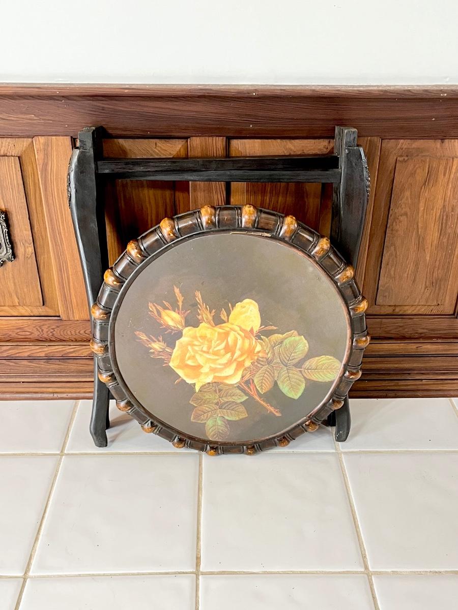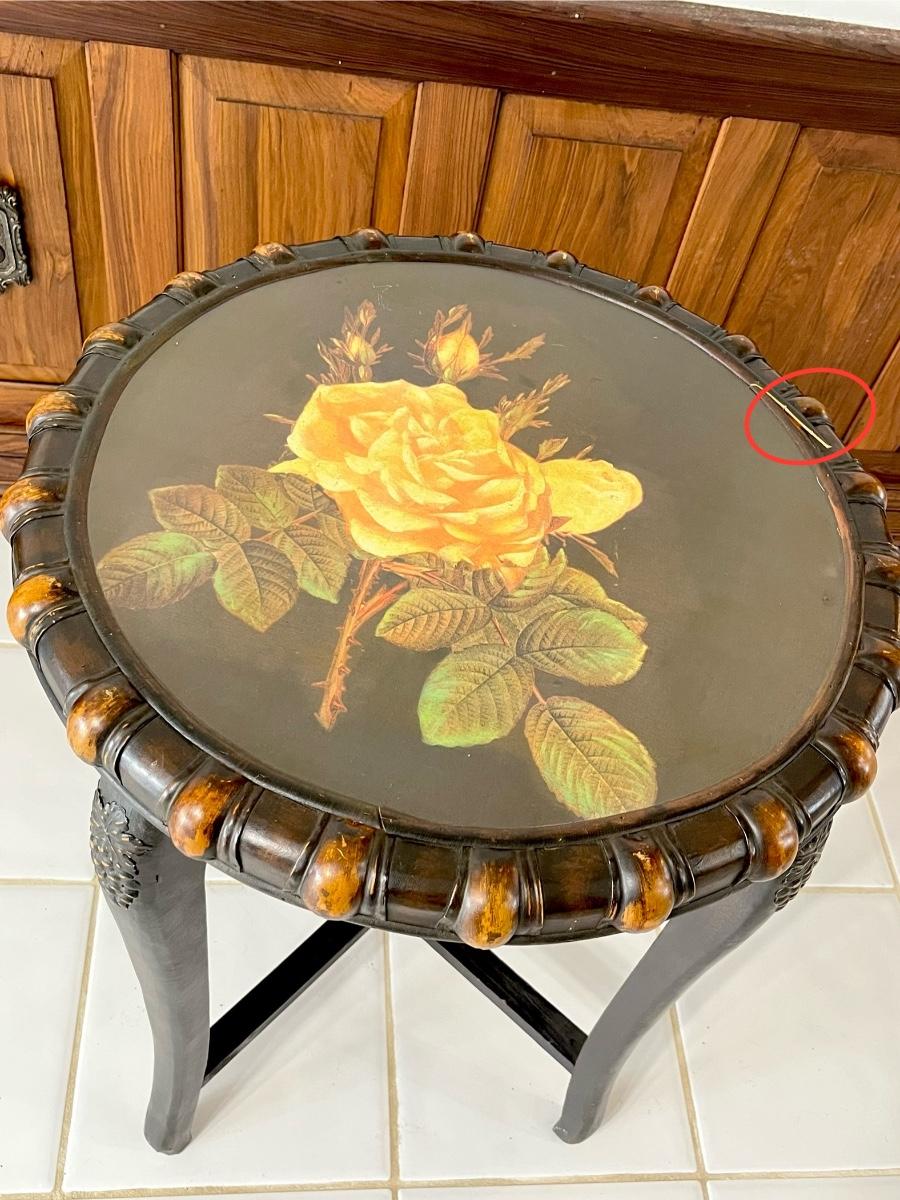 33” H x 24” Round ~ Has a piece of wood that needs repair on top as seen in photo