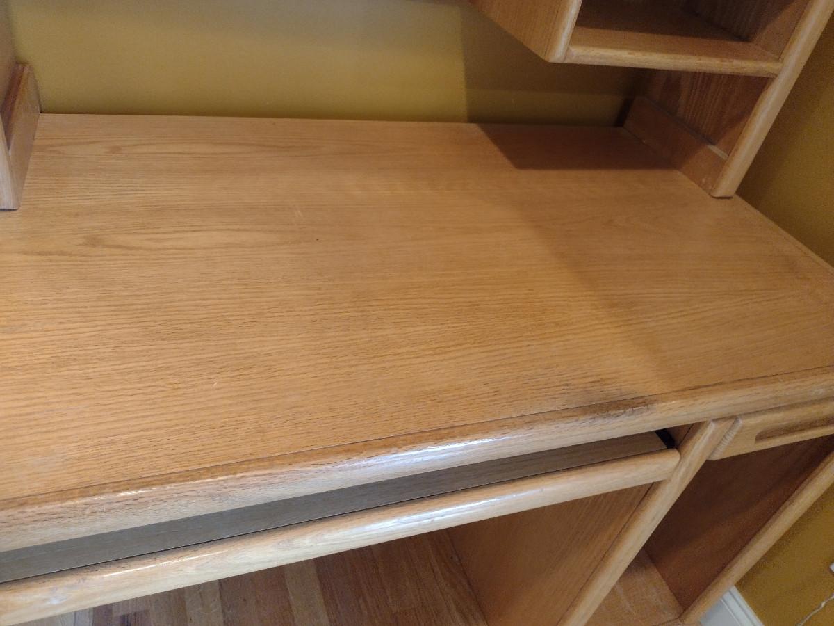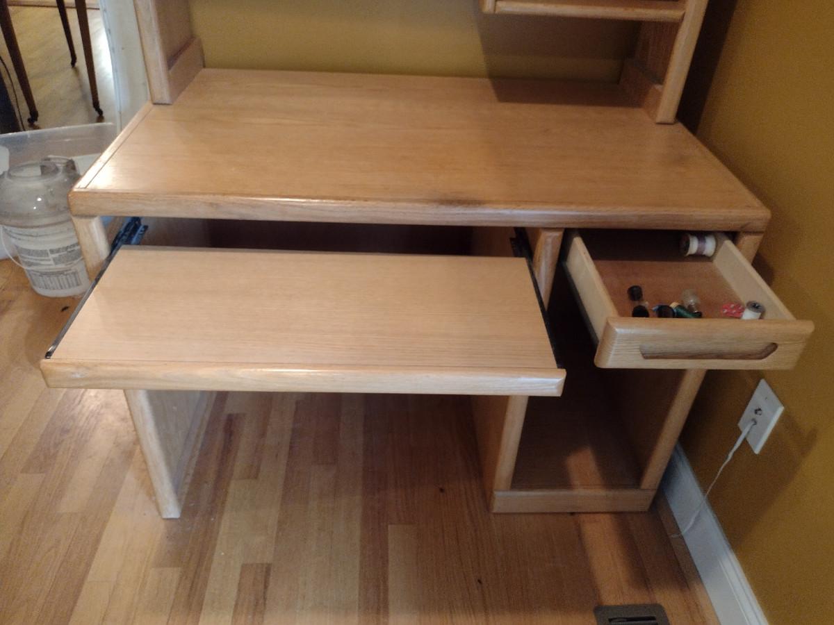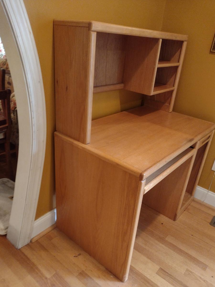 Solid Wood Computer Desk. Item is two pieces and measures approx 41" wide, 24" deep.