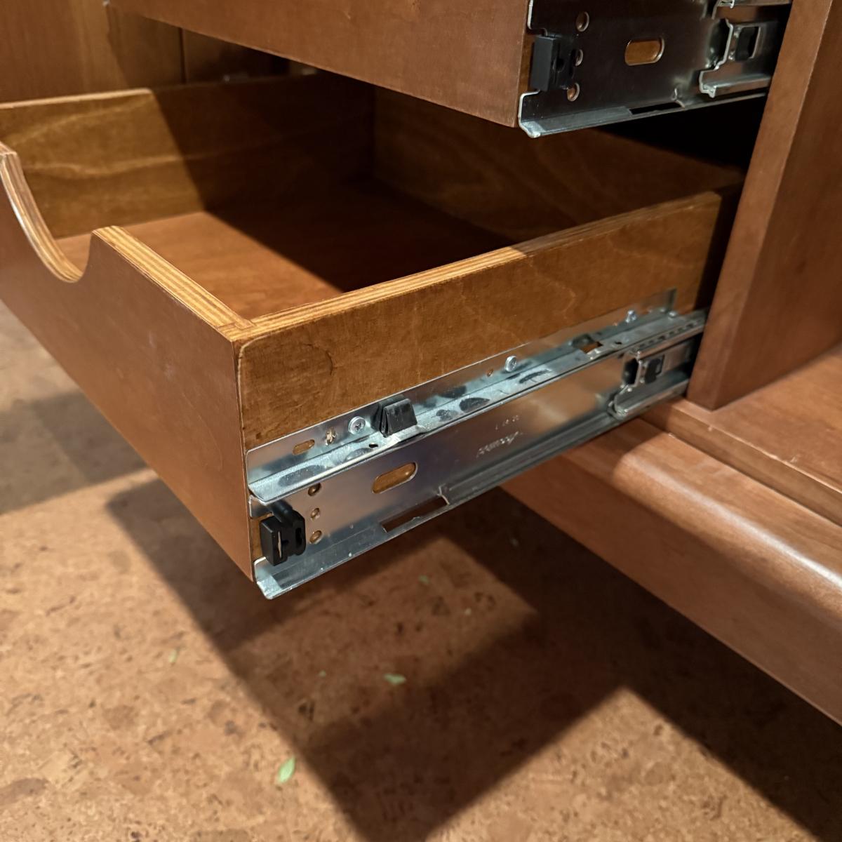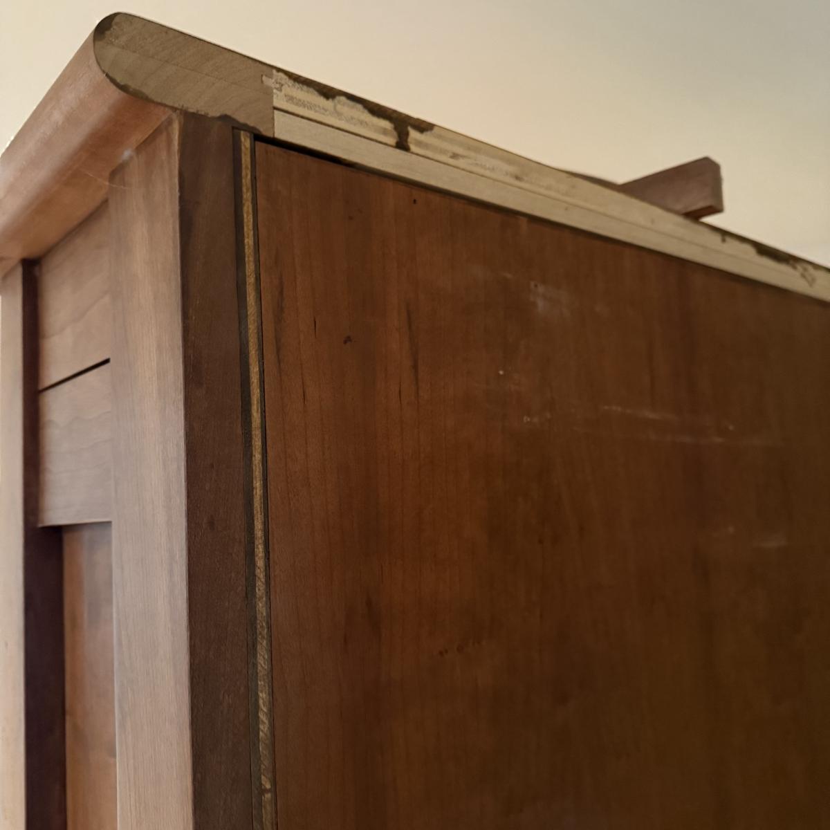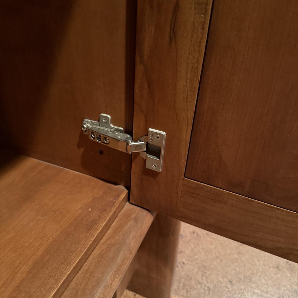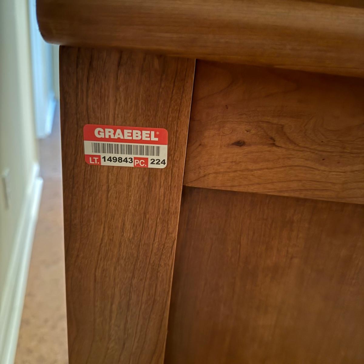 This lot contains a stunning large hutch that does appear to made out of mostly solid wood with a bit of manufactured wood for some filler pieces. This is a very sturdy very heavy piece! It has open shelves on the top. The left side of the cupboard below has three drawers on sliders and the right side of the cupboard is open storage. There is a hole in the back of the right cupboard for cords. There are some scratches on the inside of the left cupboard door from the drawers. This piece measures 45” x 22.5” x 82.5”H. The top shelves do come off the bottom cupboard. This item is located in the basement of this house. Local pick up only. Winning bidder must bring assistance to help move and load this item due to its weight and/or size.