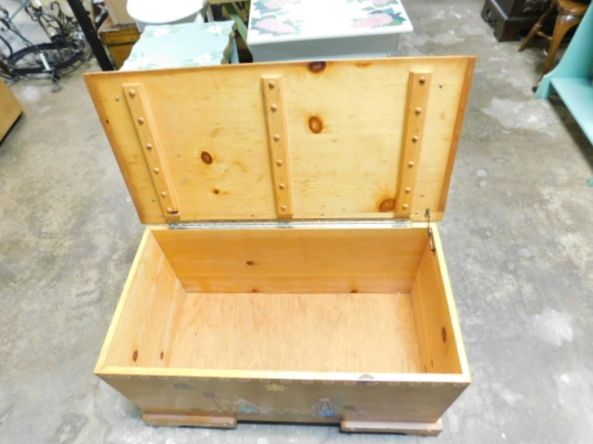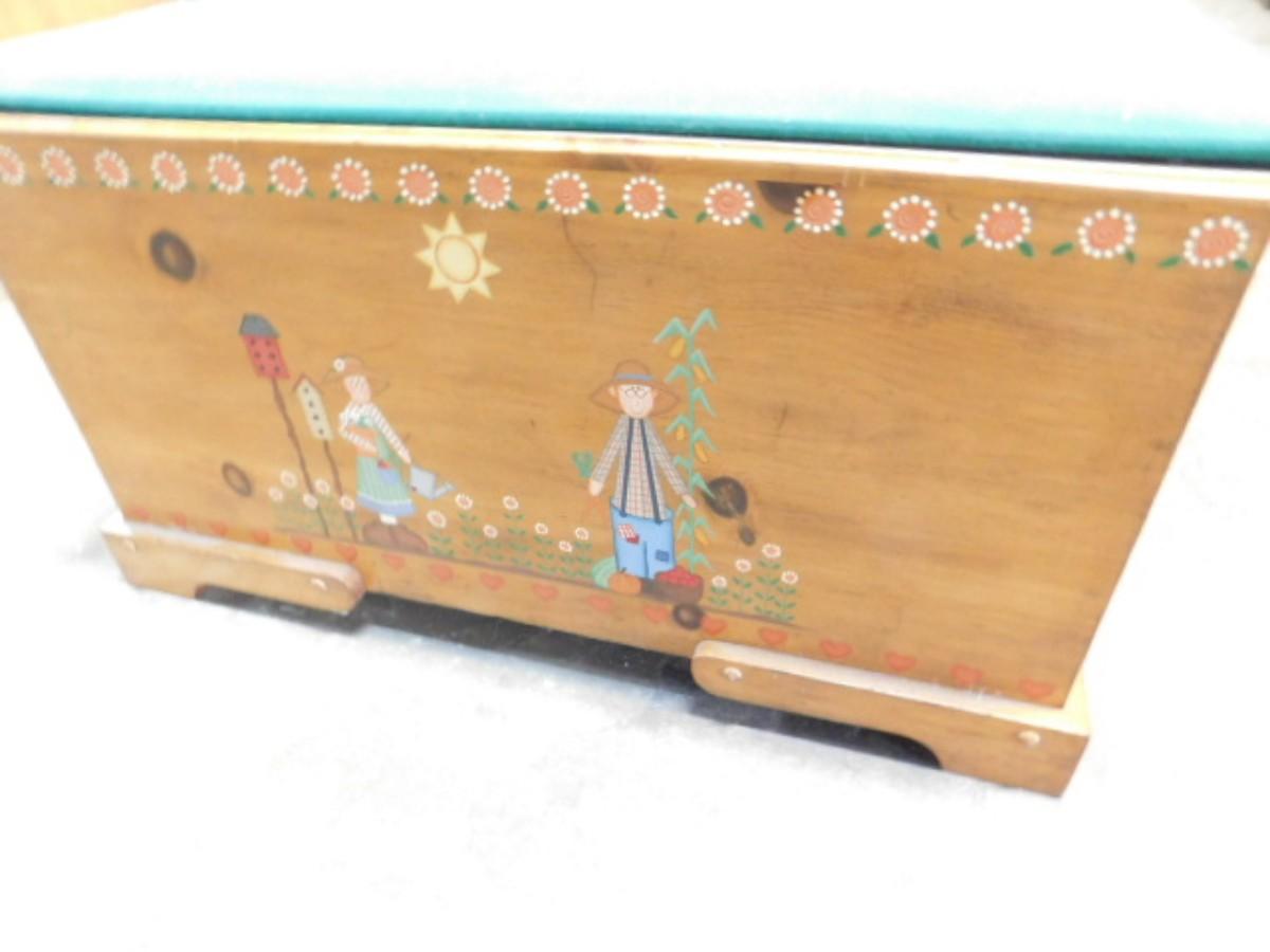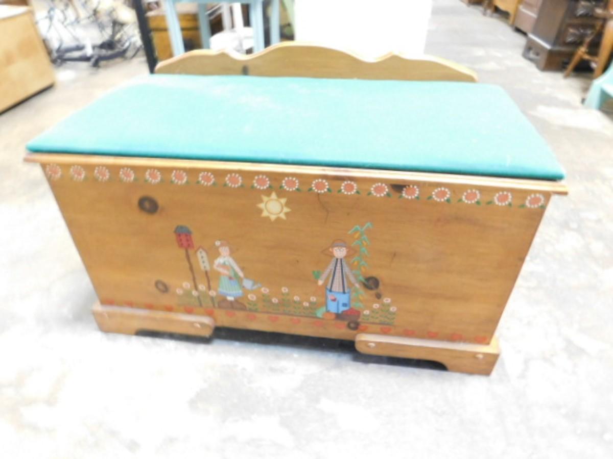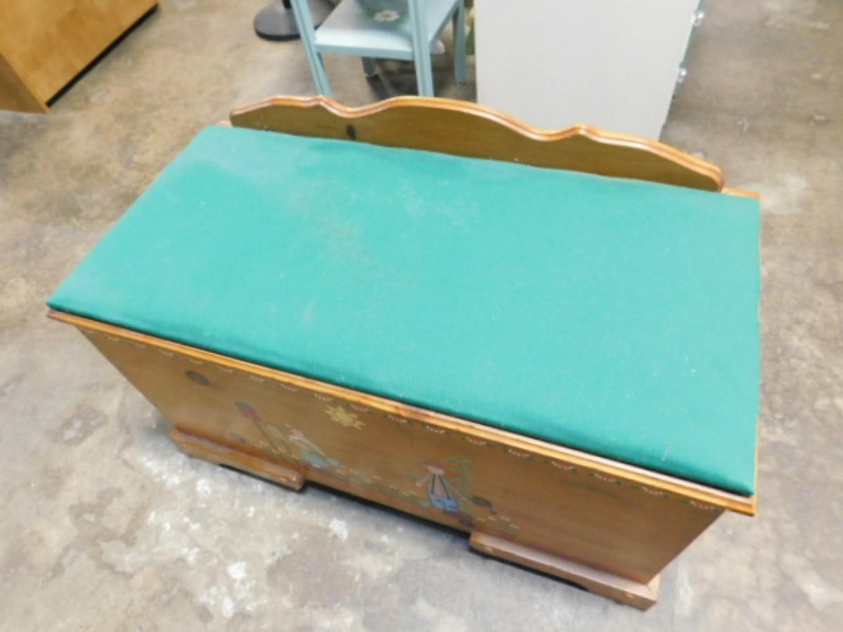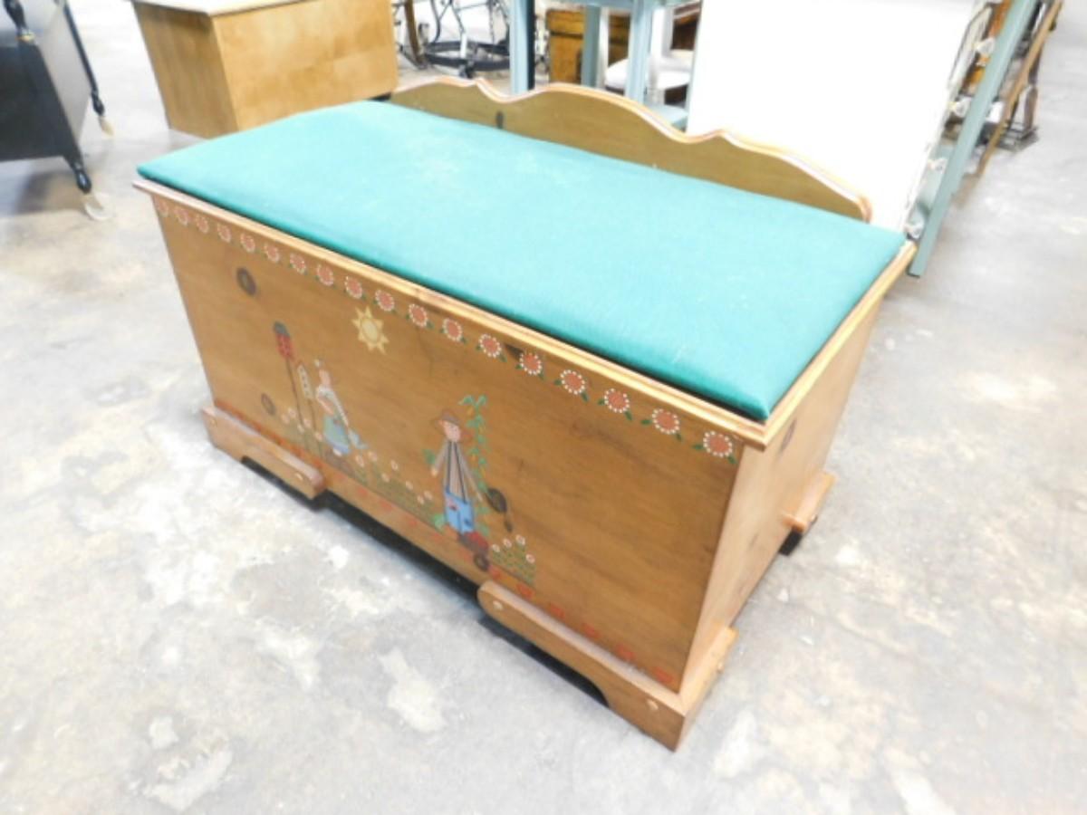 Solid Wood Cushioned Top Blanket Chest Hand Painted Accents