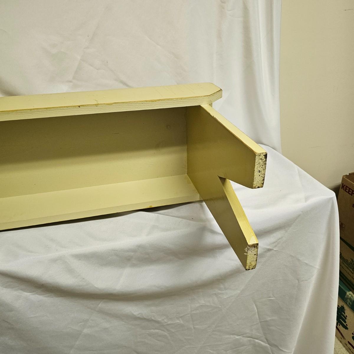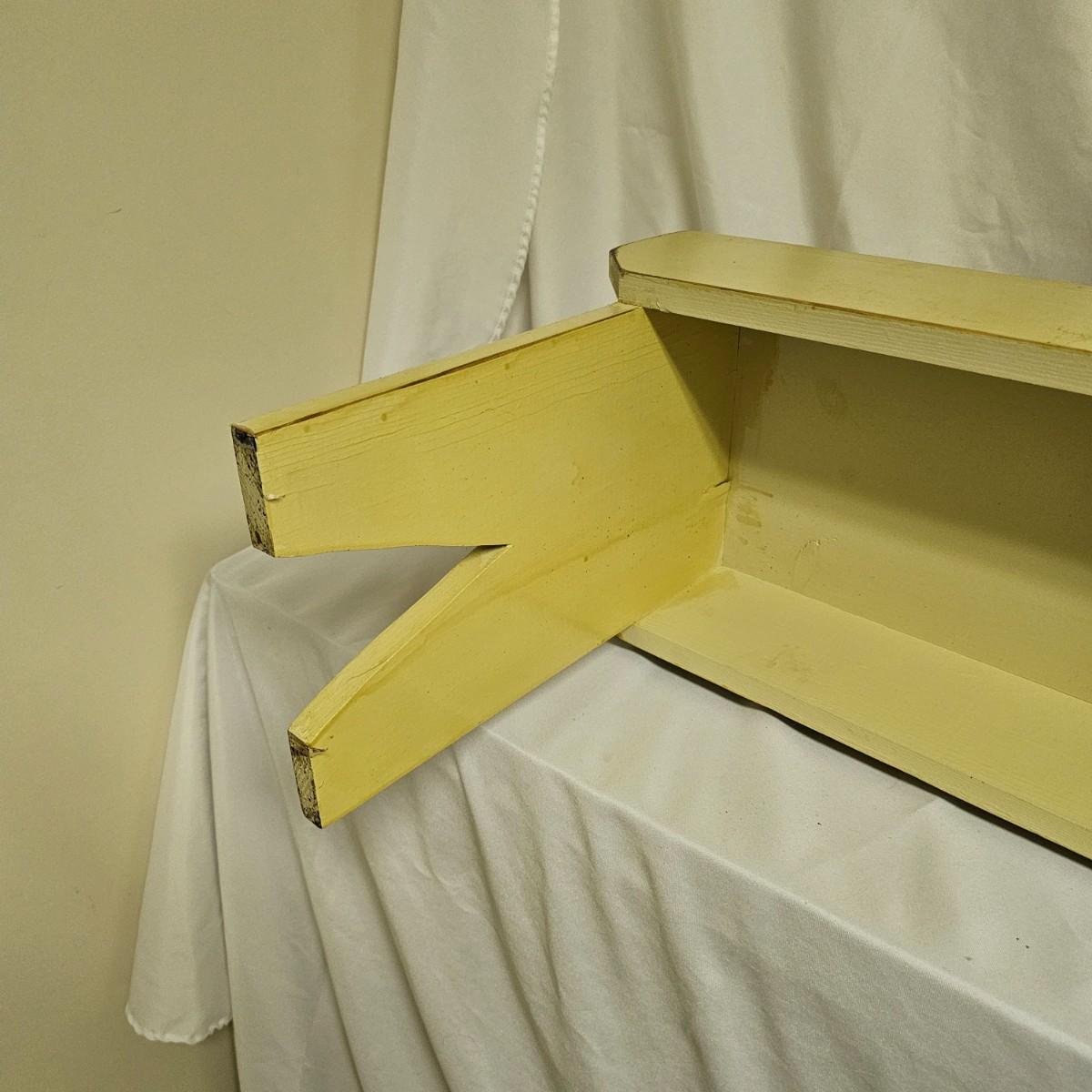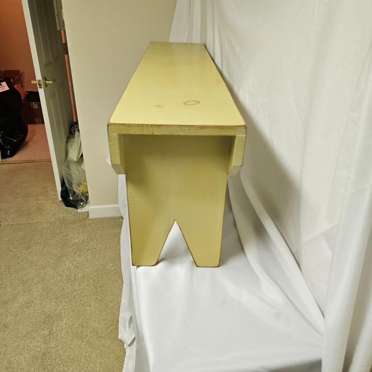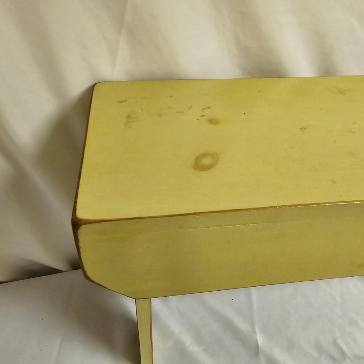 Painted in ochre yellow color, this solid wood bench appears to be pine and is compact enough to use anywhere. Measures 48" x 10.5" x 16"H. The edges have been roughed over for contrast with the finish. See photos for details. Local pickup only. Please note, item is located upstairs.