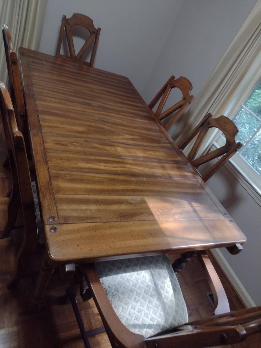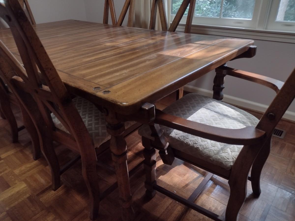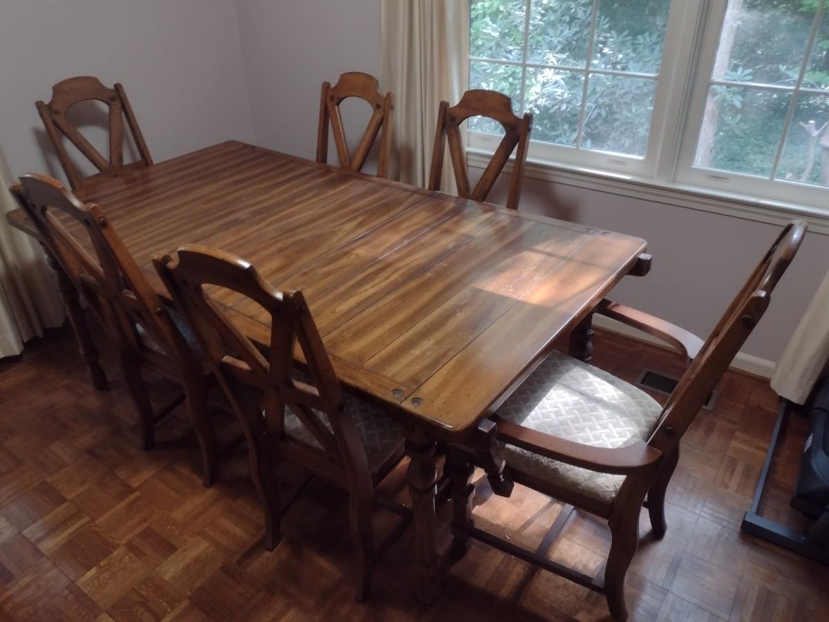 Solid Wood Dining Room Set with Six Chairs and Two Leaves