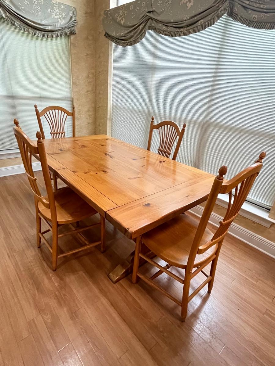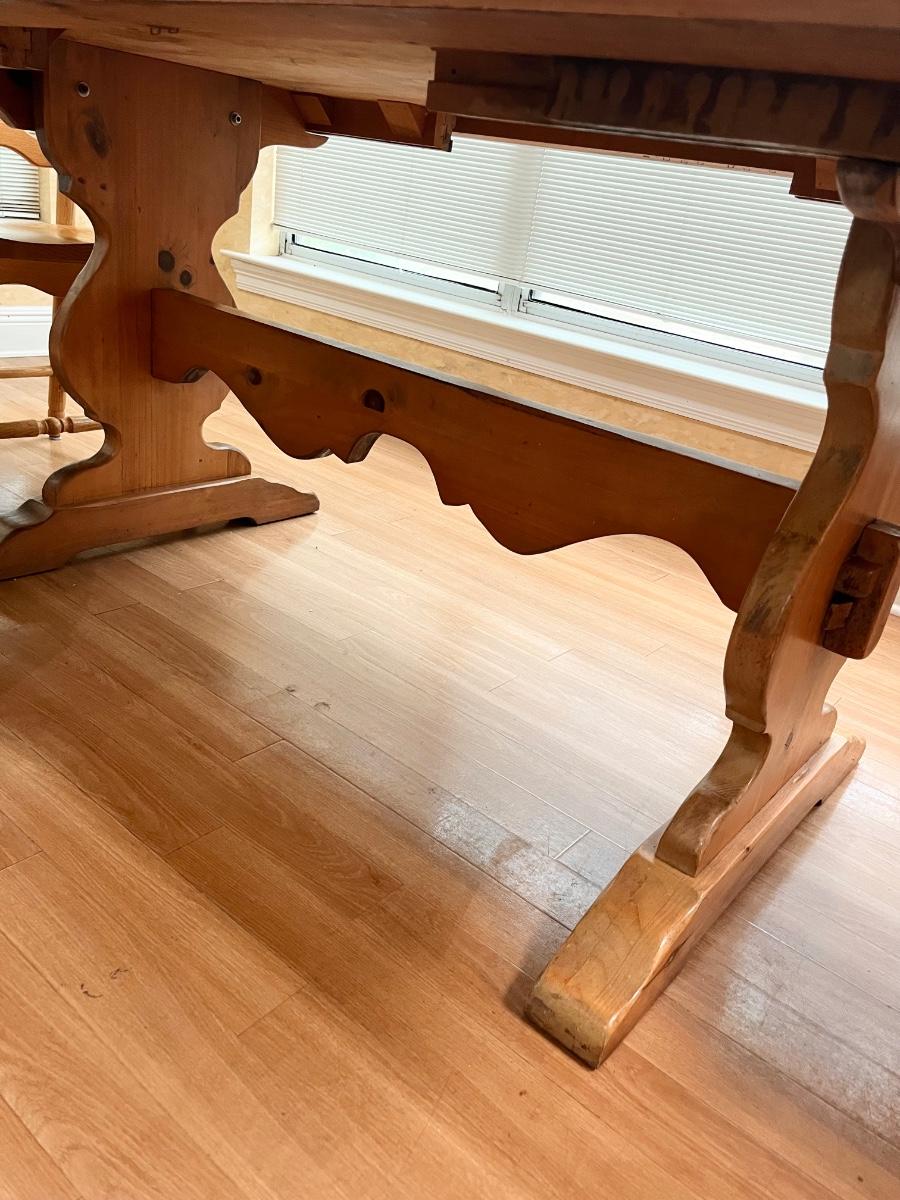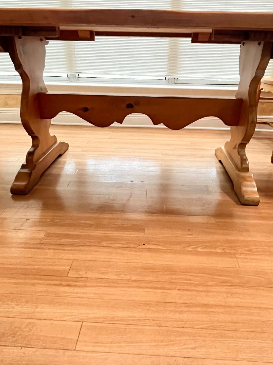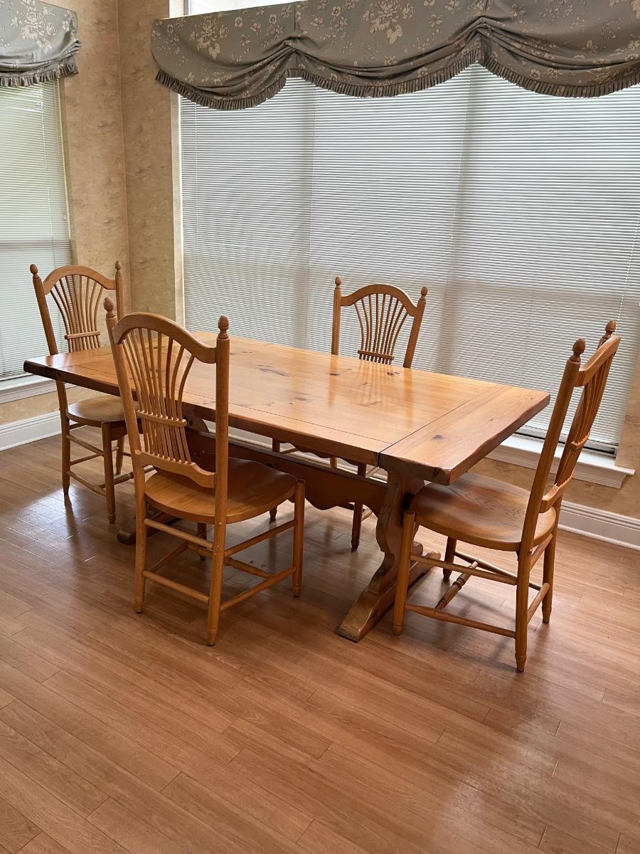 Solid Wood Dining Room Trestle Table With Four (4) Chairs
