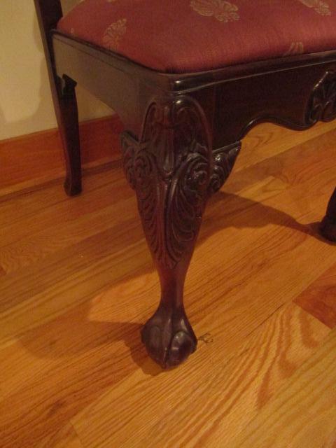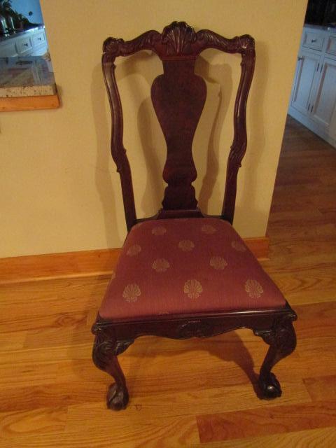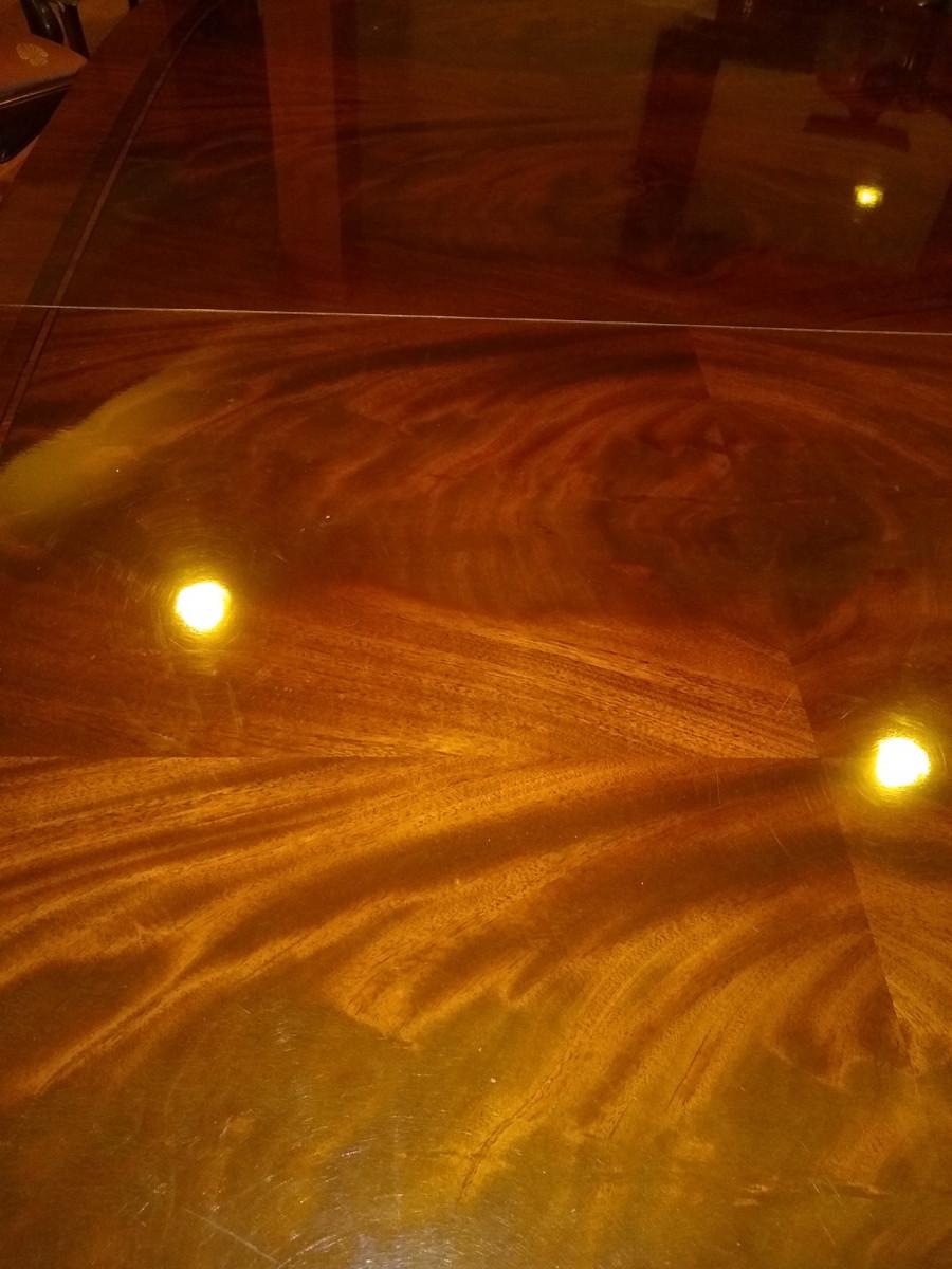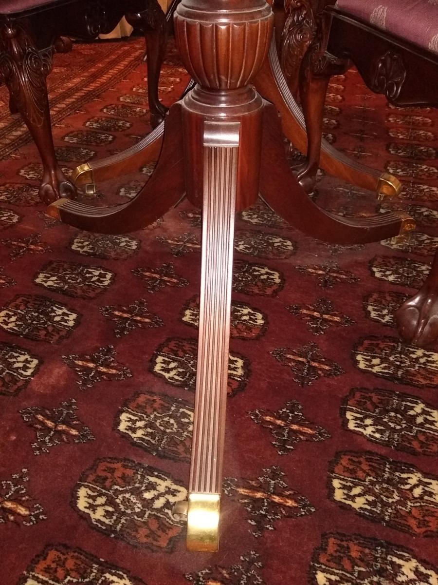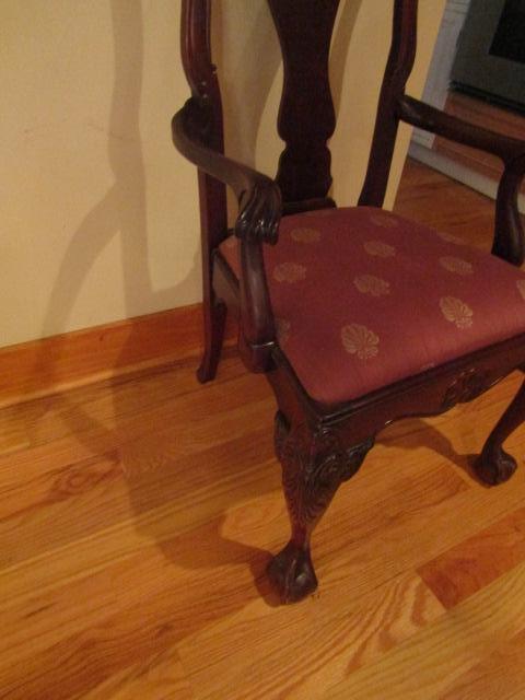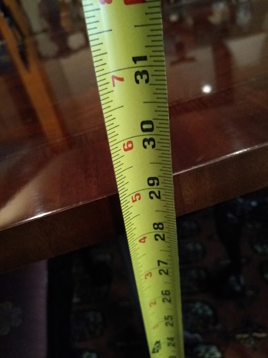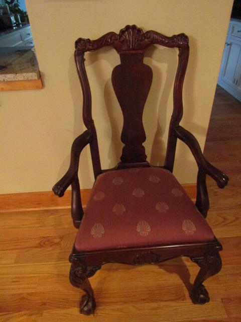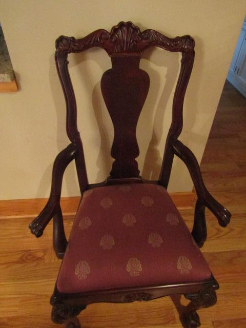 Solid Wood Dining Room Table and Chairs by Bernhardt. Table is approx 72 1/2" long, 46 1/2" wide, 29" tall. There are 3 additional leaves (each 18"). 8 chairs total- 2 are captain's chairs. Table also has protective pad.