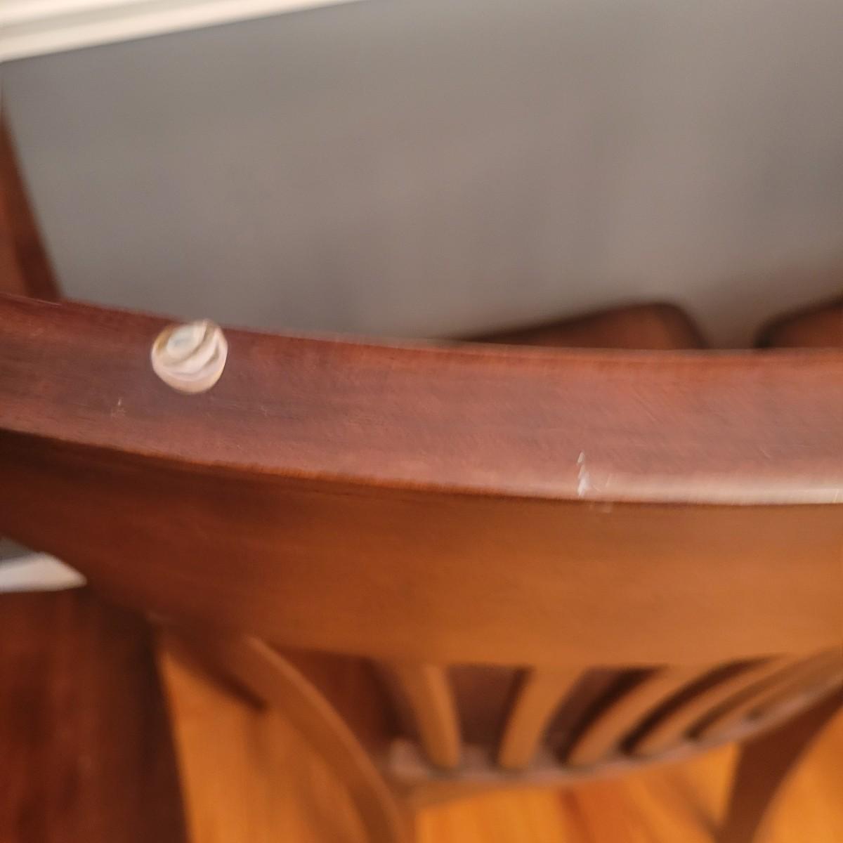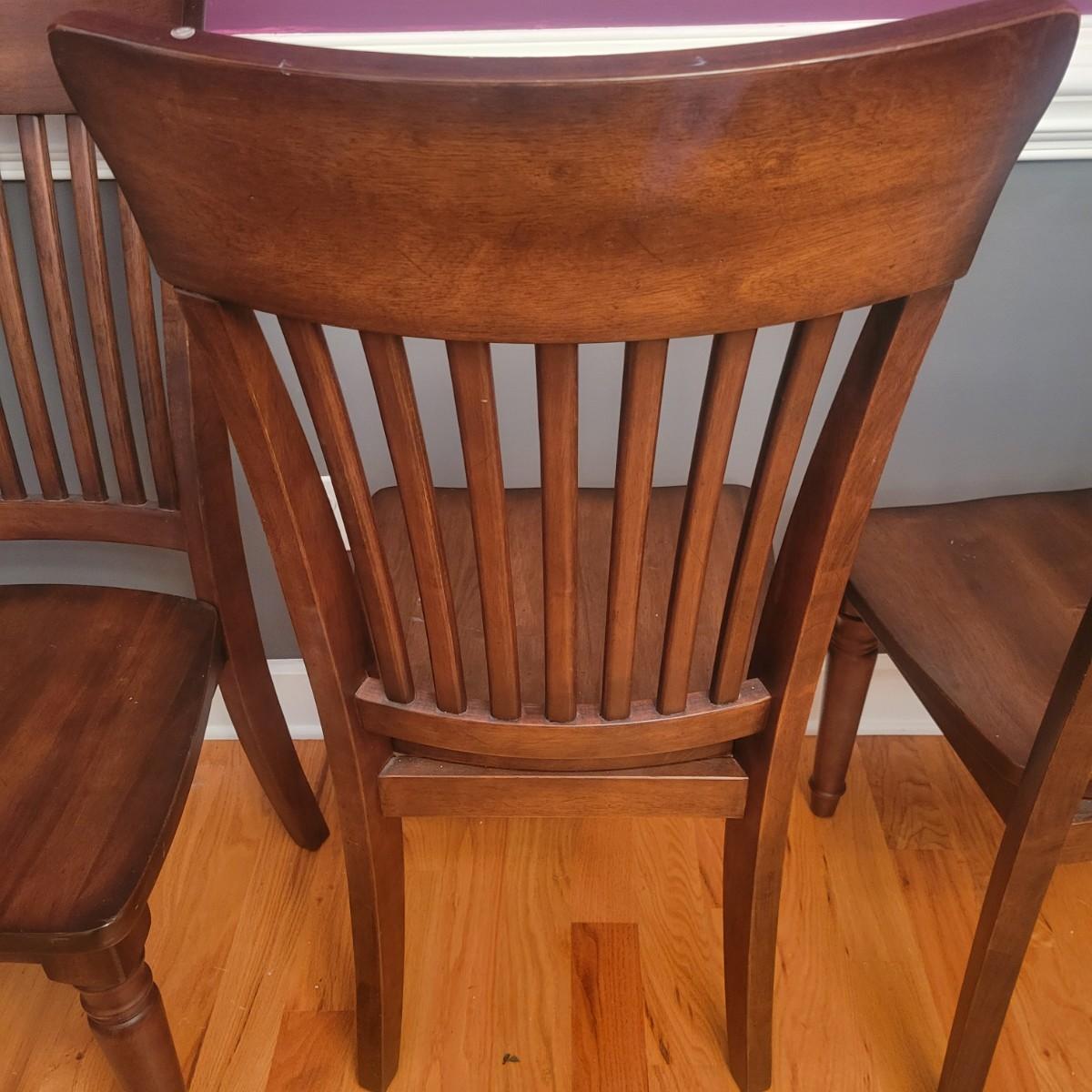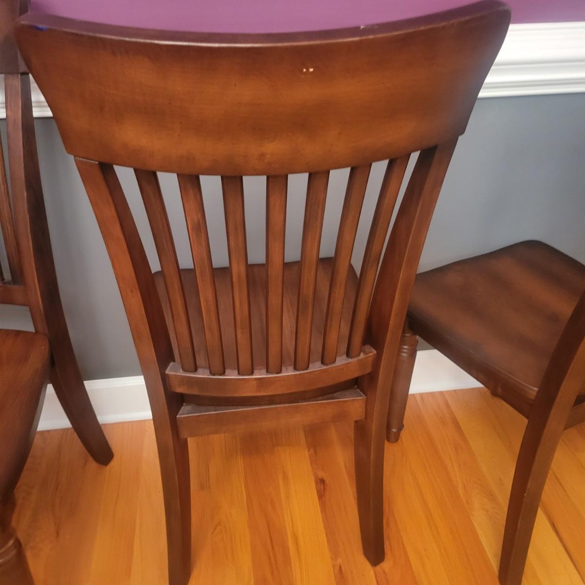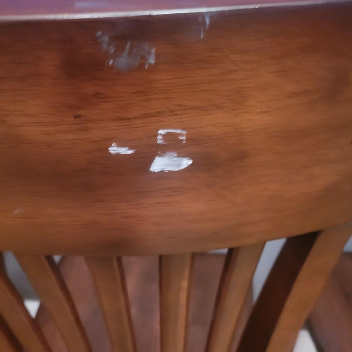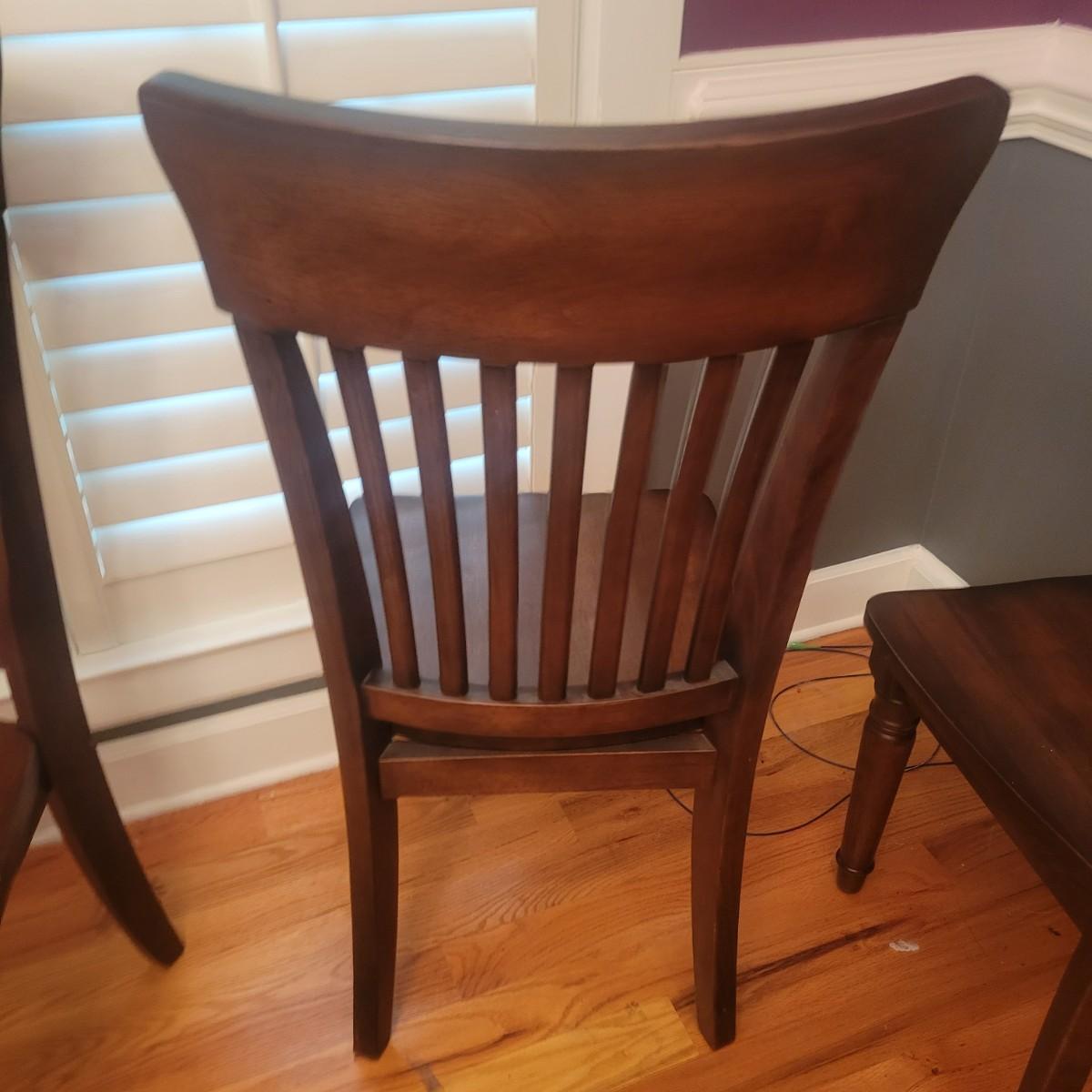 A solid wood Hsien Yang dining room table and eight chairs. The dining room table is made of solid wood and features a rich dark brown stain. It has two 18" leafs. Without the leafs, the table measures approximately 44" x 45" x 30". Also included are eight matching chairs made of solid wood as well, that measure approximately 20" x 23" x 41.5" with a seat height of 18". Table and chairs are in mostly good condition with some scratches and blemishes, including some paint splatters. Local pickup only. Winning bidder must bring assistance to help move and load these items due to their weight and/or size.