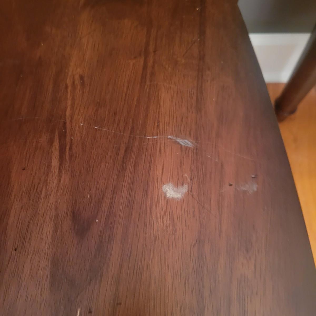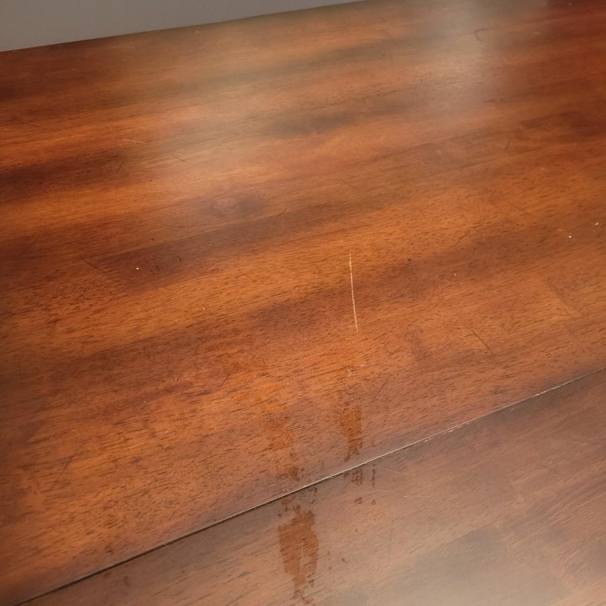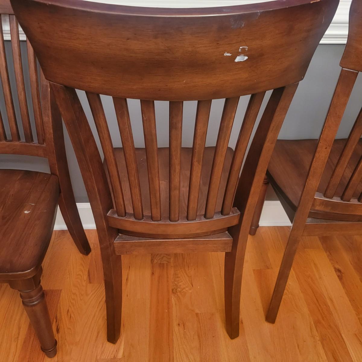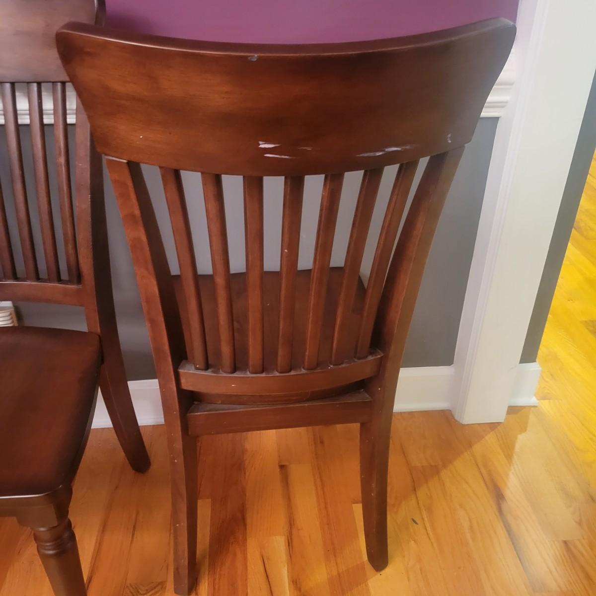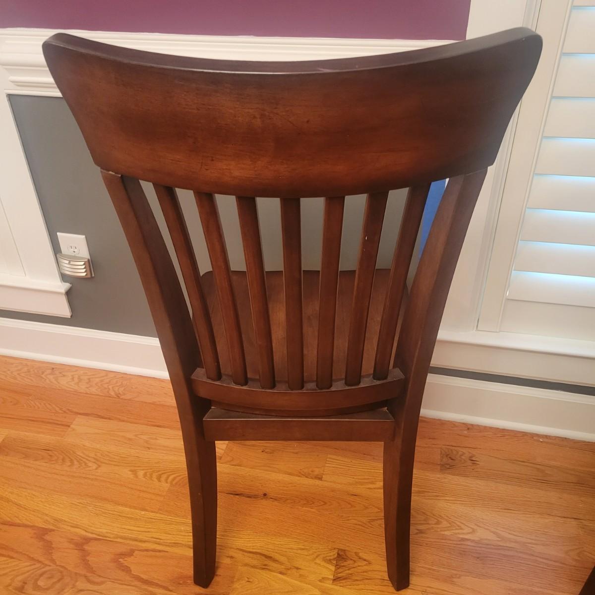 A solid wood Hsien Yang dining room table and eight chairs. The dining room table is made of solid wood and features a rich dark brown stain. It has two 18" leafs. Without the leafs, the table measures approximately 44" x 45" x 30". Also included are eight matching chairs made of solid wood as well, that measure approximately 20" x 23" x 41.5" with a seat height of 18". Table and chairs are in mostly good condition with some scratches and blemishes, including some paint splatters. Local pickup only. Winning bidder must bring assistance to help move and load these items due to their weight and/or size.