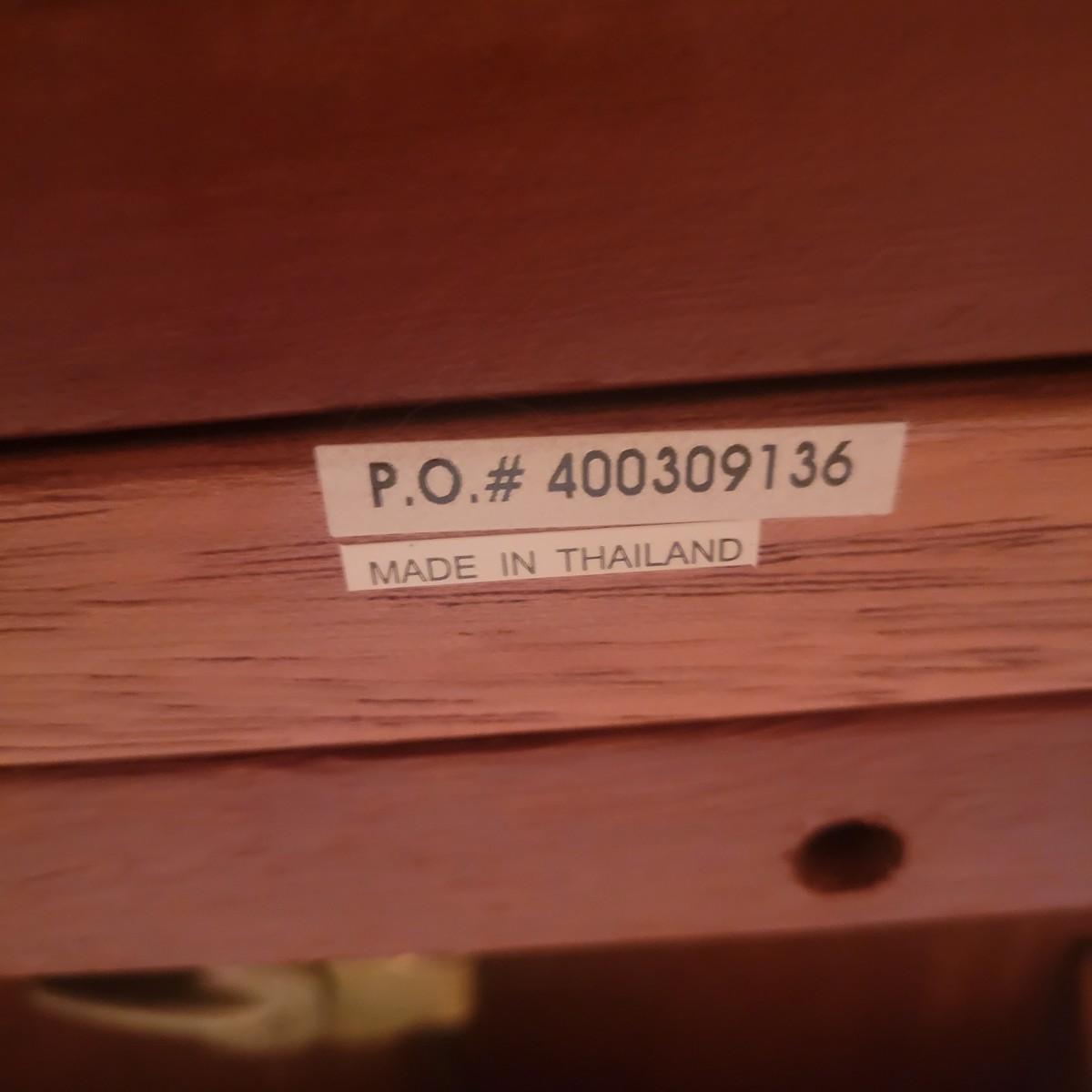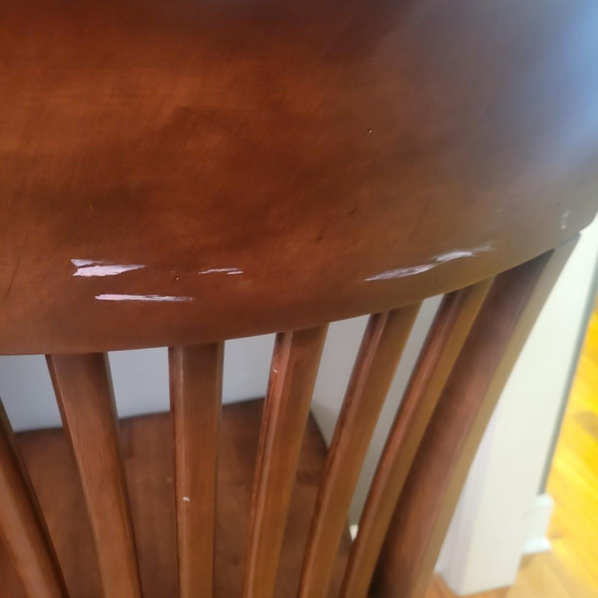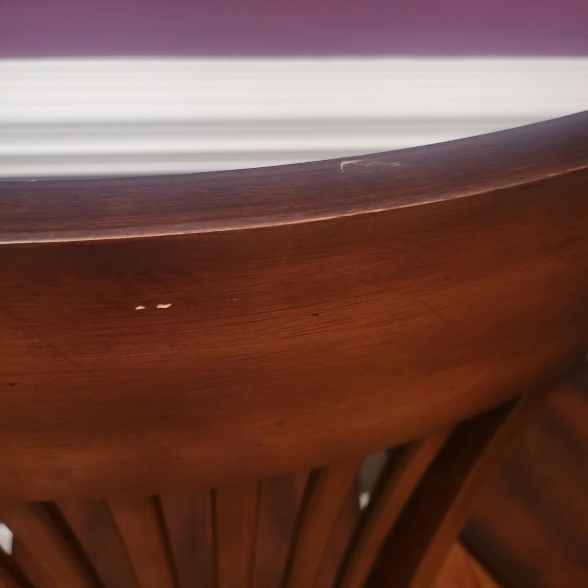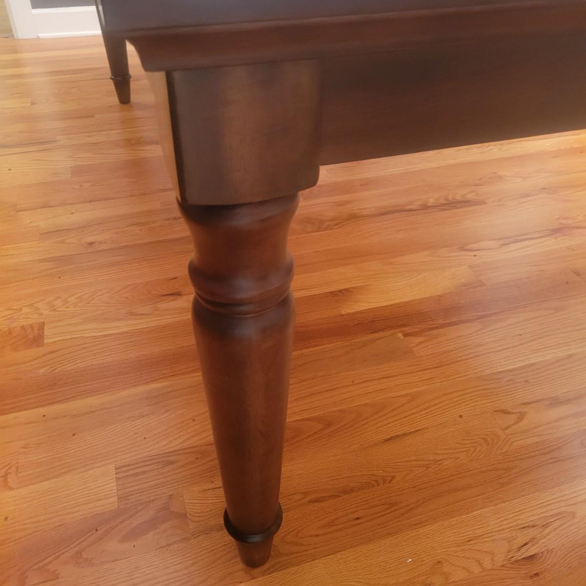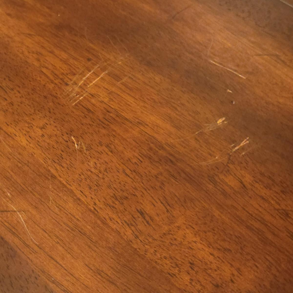 A solid wood Hsien Yang dining room table and eight chairs. The dining room table is made of solid wood and features a rich dark brown stain. It has two 18" leafs. Without the leafs, the table measures approximately 44" x 45" x 30". Also included are eight matching chairs made of solid wood as well, that measure approximately 20" x 23" x 41.5" with a seat height of 18". Table and chairs are in mostly good condition with some scratches and blemishes, including some paint splatters. Local pickup only. Winning bidder must bring assistance to help move and load these items due to their weight and/or size.