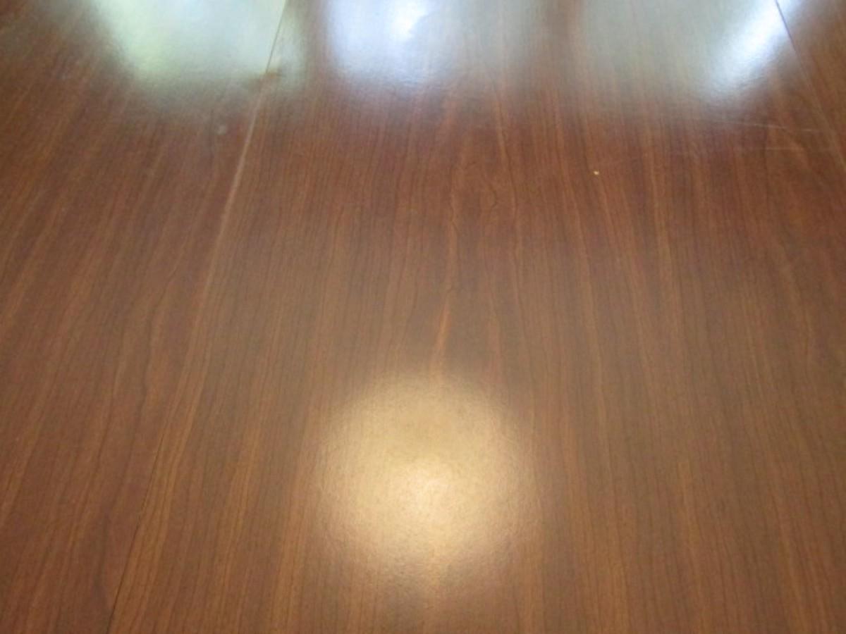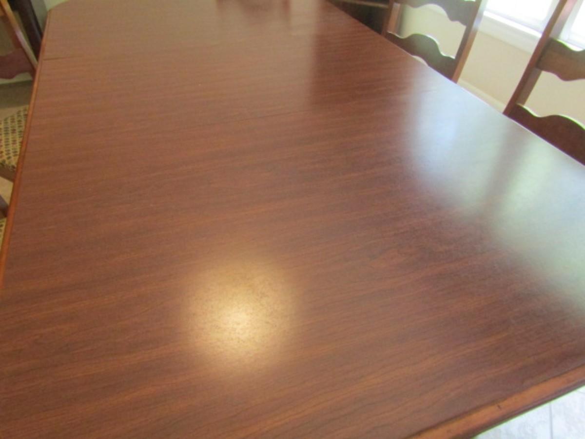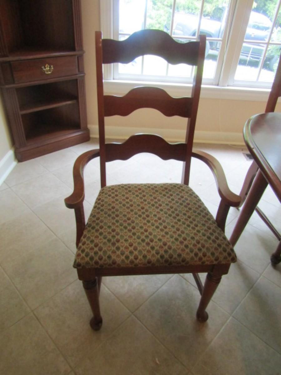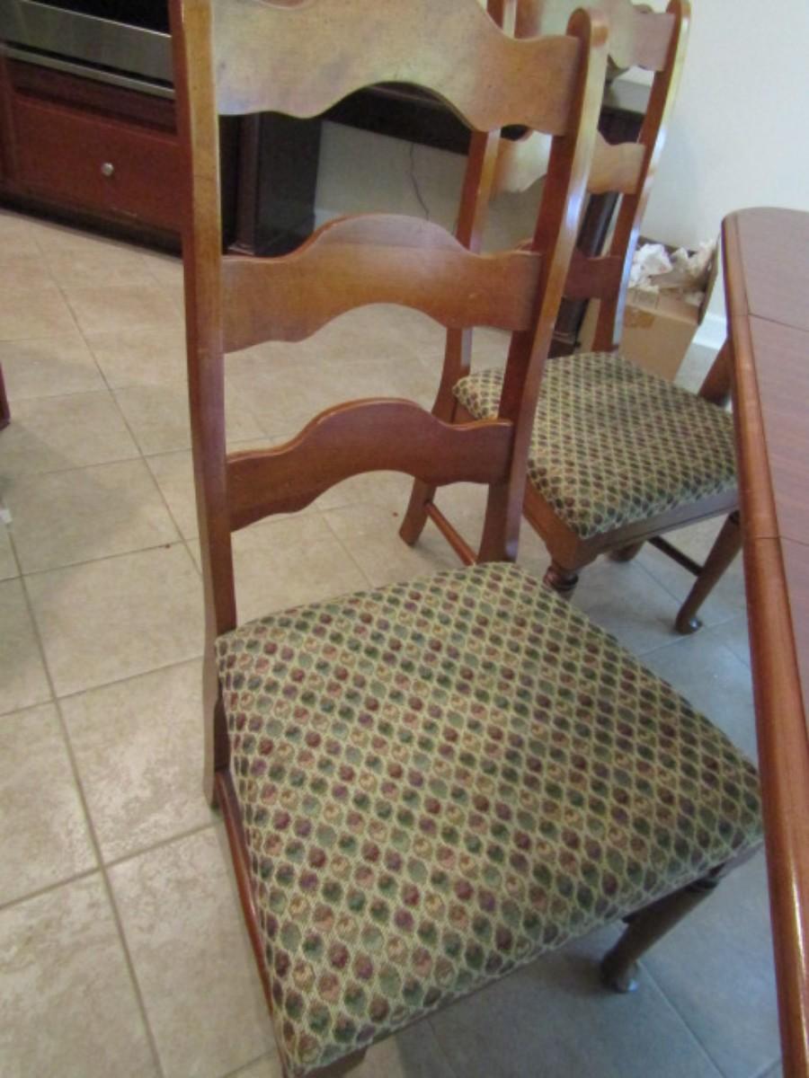 Wood Finish Dining Room Table with Six Matching Ladder Back Chairs