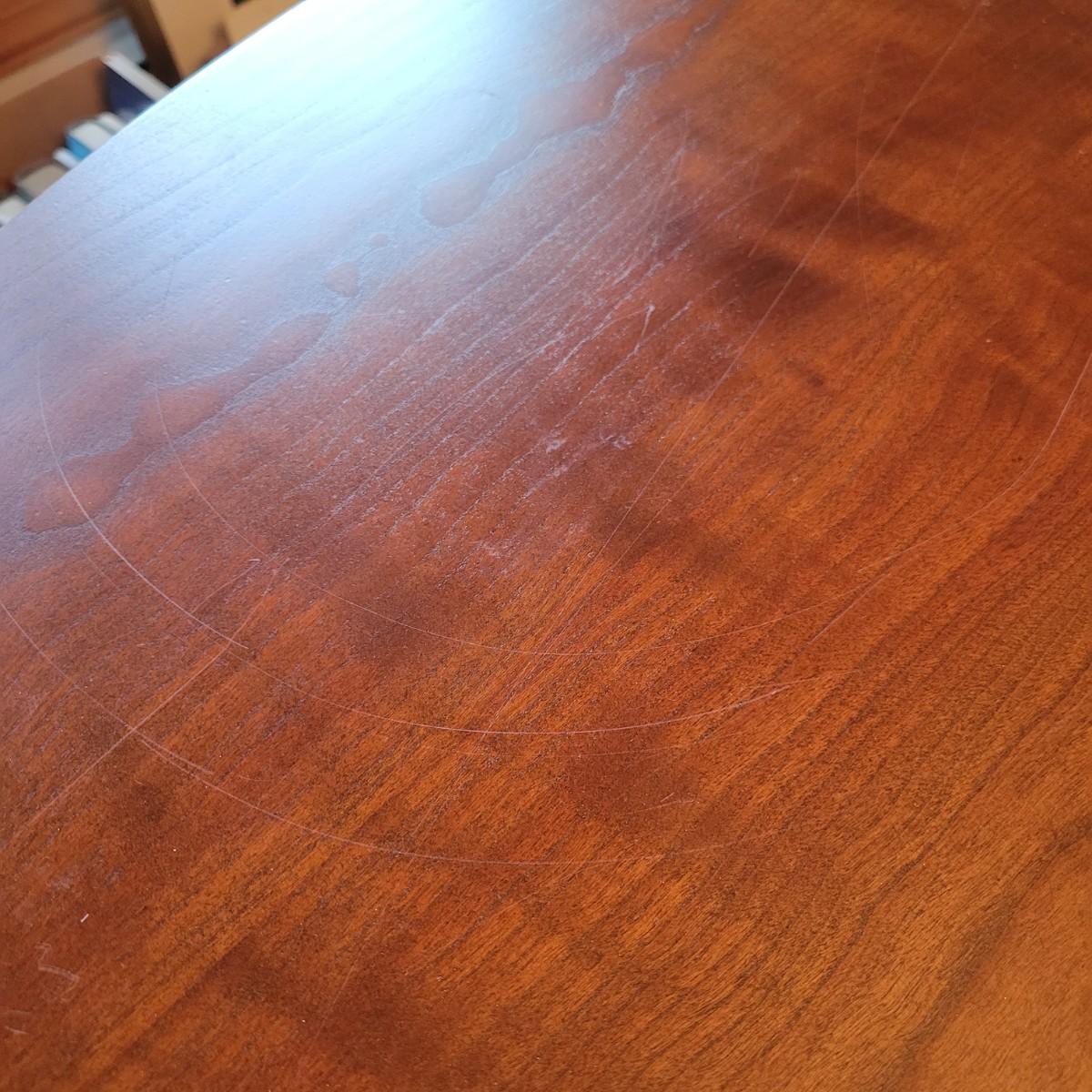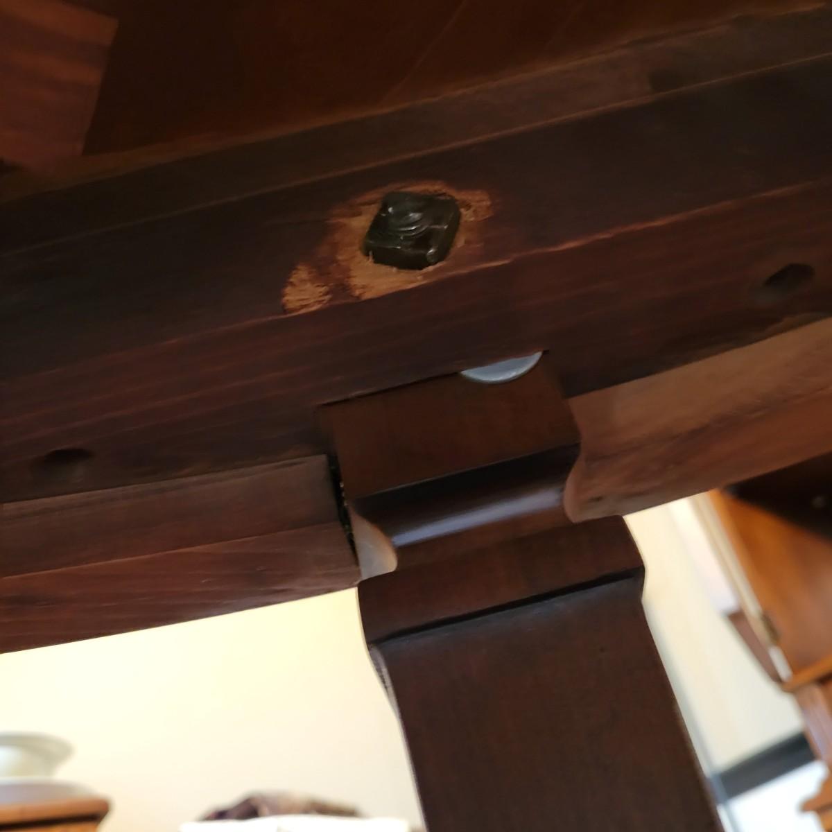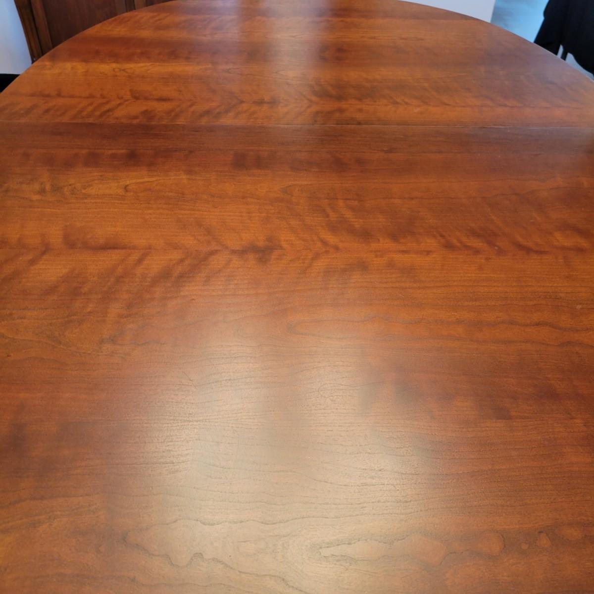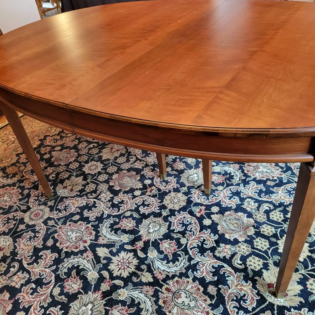 A solid wood dining room table that includes two 10” W leaves and a four piece table cover. This table measures approximately 64.5" x 44" x 30”H at its smallest (without leaves). There are some minor scratches on the table surface. Local pickup only. Winning bidder must bring assistance to help move and load this item due to its weight and/or size.