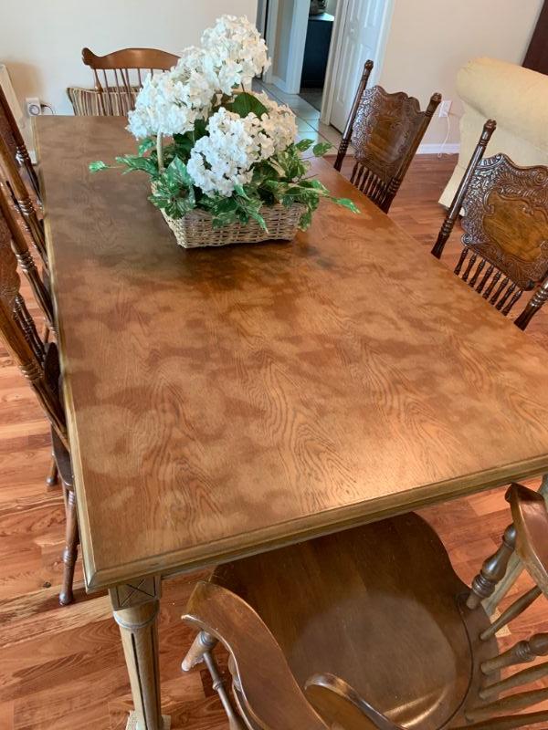 Top of table will need to be refinished if you are not planning on using a tablecloth.