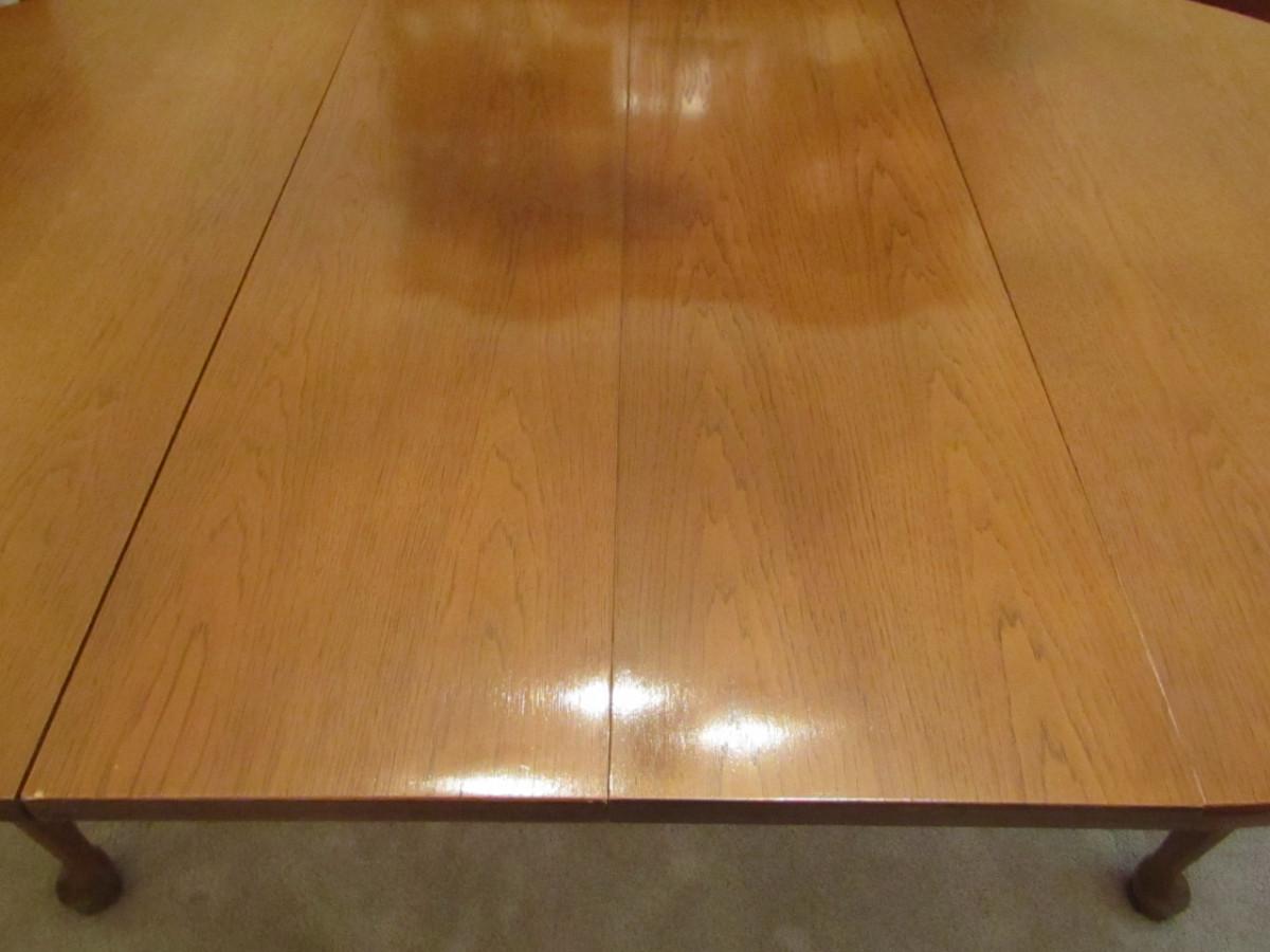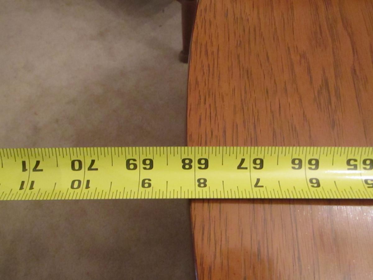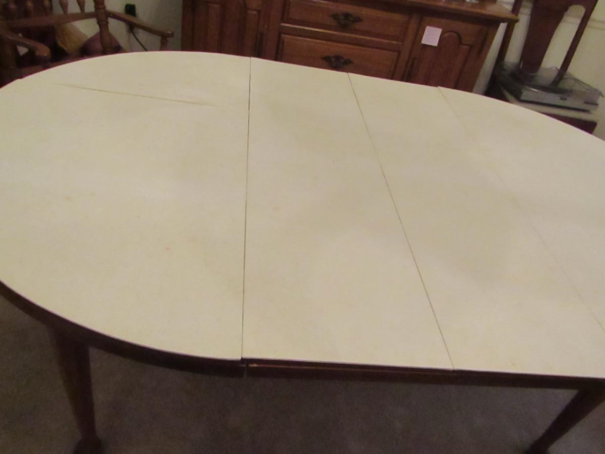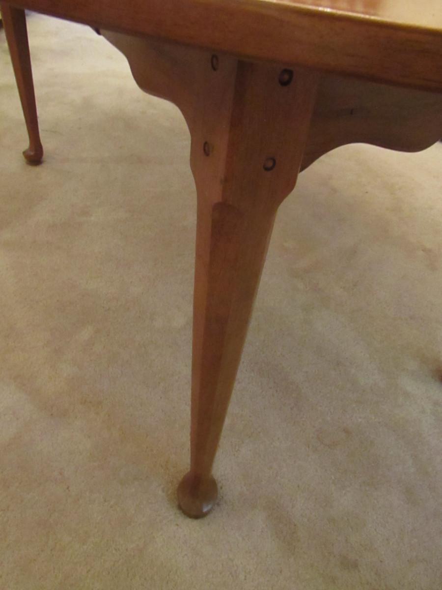 Solid Wood Dining Table. Total length with both leaves (12" each) added is 68". Table comes with protective pad top.