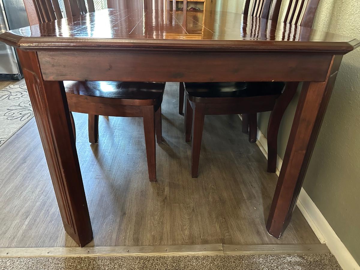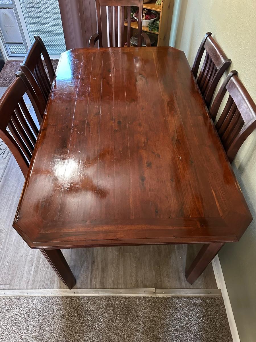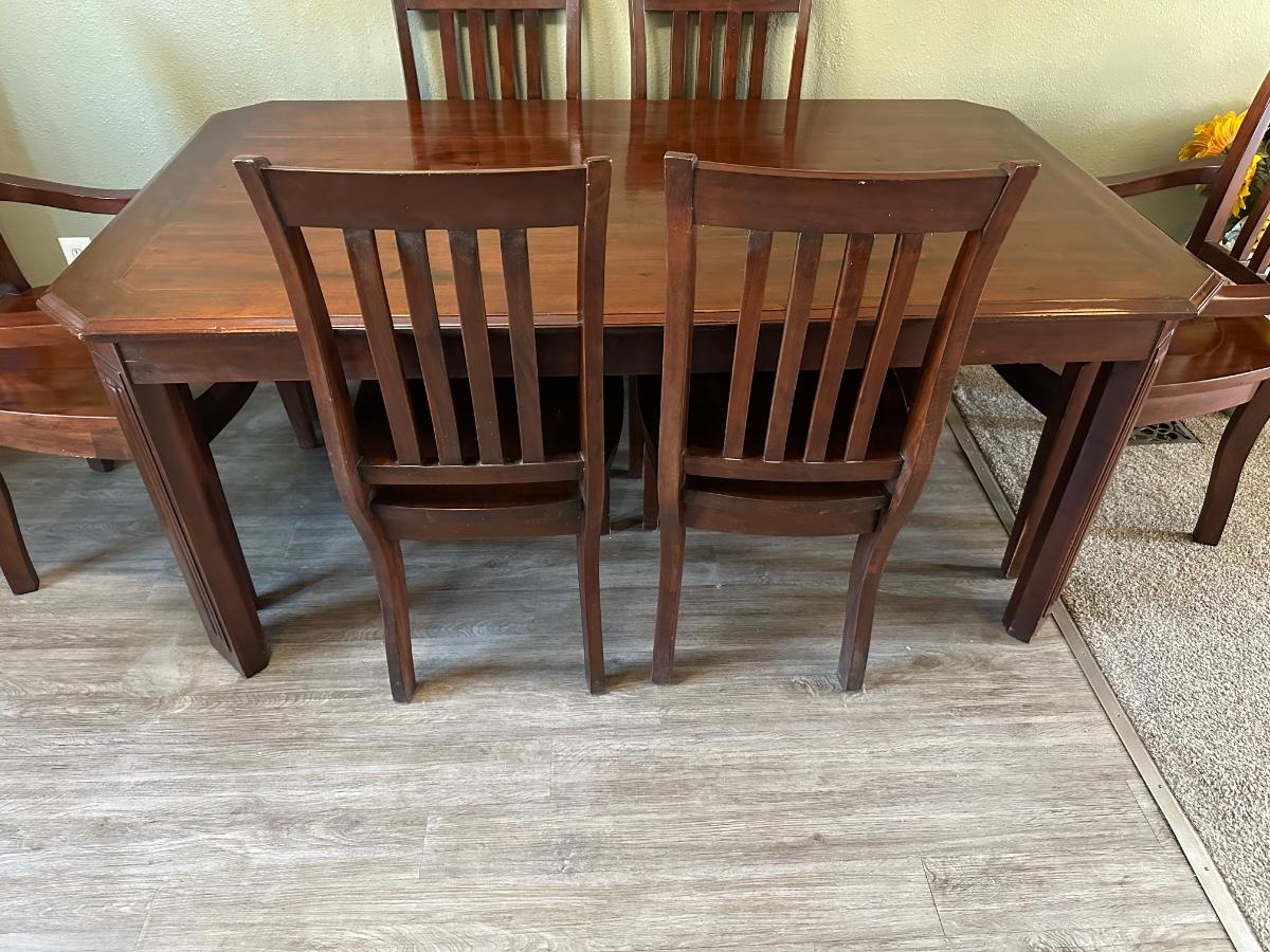 SOLID WOOD DINING TABLE WITH 2 ARM CHAIRS AND 4 SIDE CHAIRS
