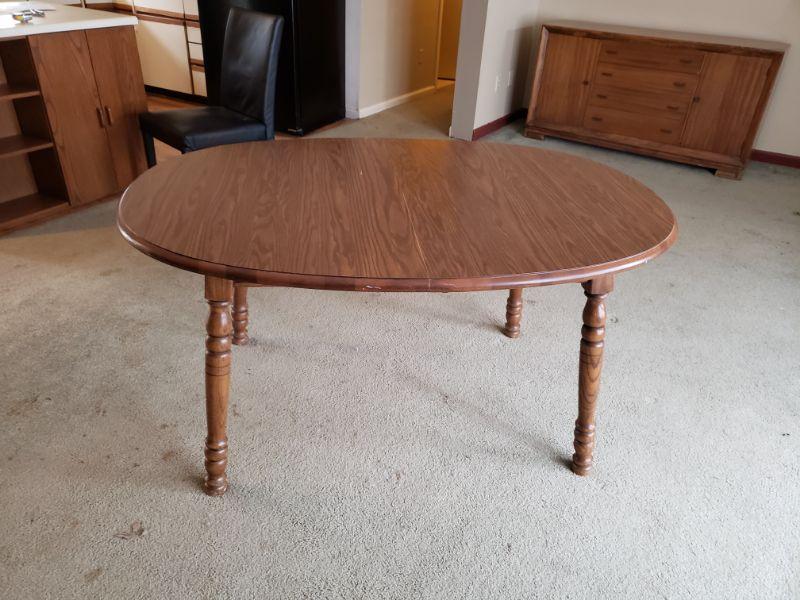 Solid Wood Dining Table with Two Leaves. Dimensions 29"h. Expands 58"w - 80"w. Lot# 0039