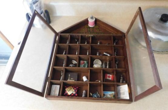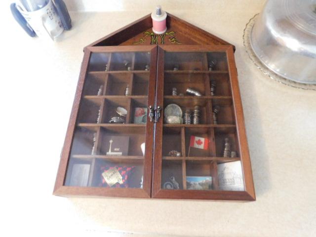 Solid Wood Display Wall Trinket Box with Double Doors Includes Thimbles ET. AL.14"x19"