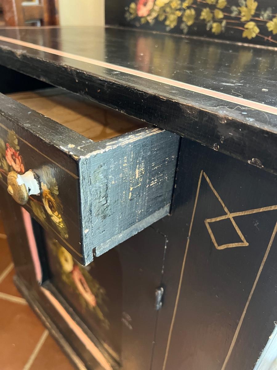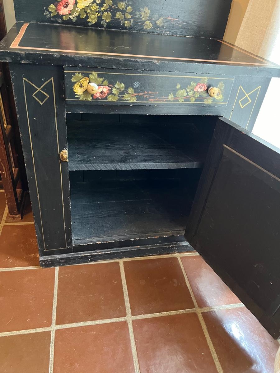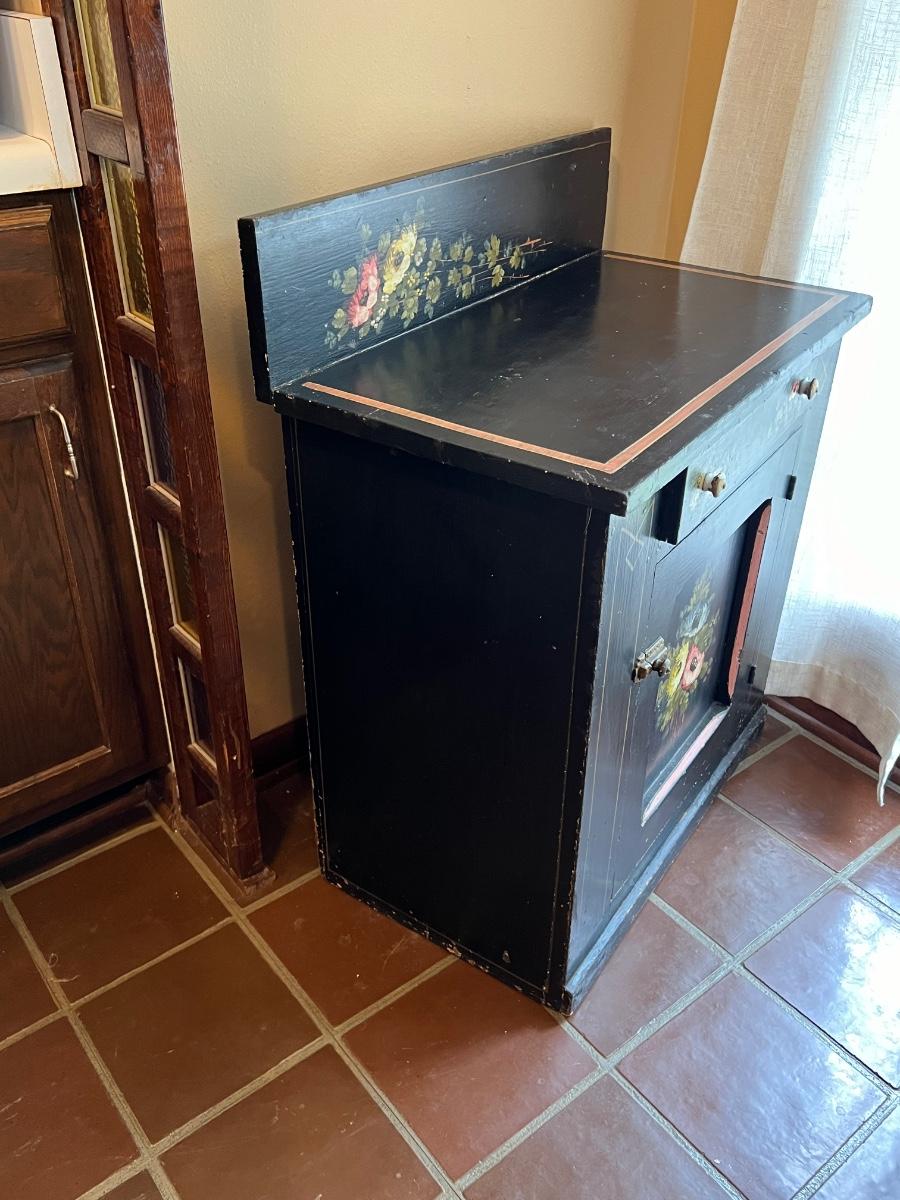Drawer slides easy ~ Shelf does not move ~ No brand ~ Has wear & tear from age & use, see photos for condition ~ 34” H x 28” W x 16.5” D