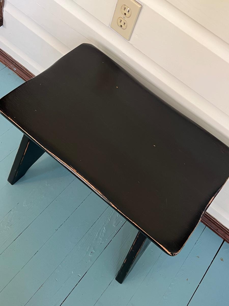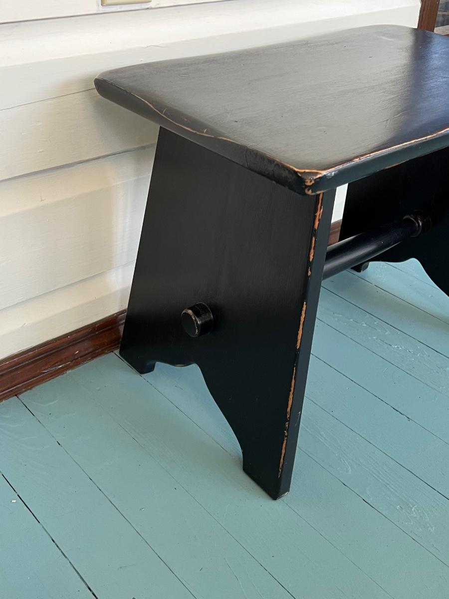 Has been painted black with distressing ~ Super sturdy ~ 17” H x 22” W x 14” D