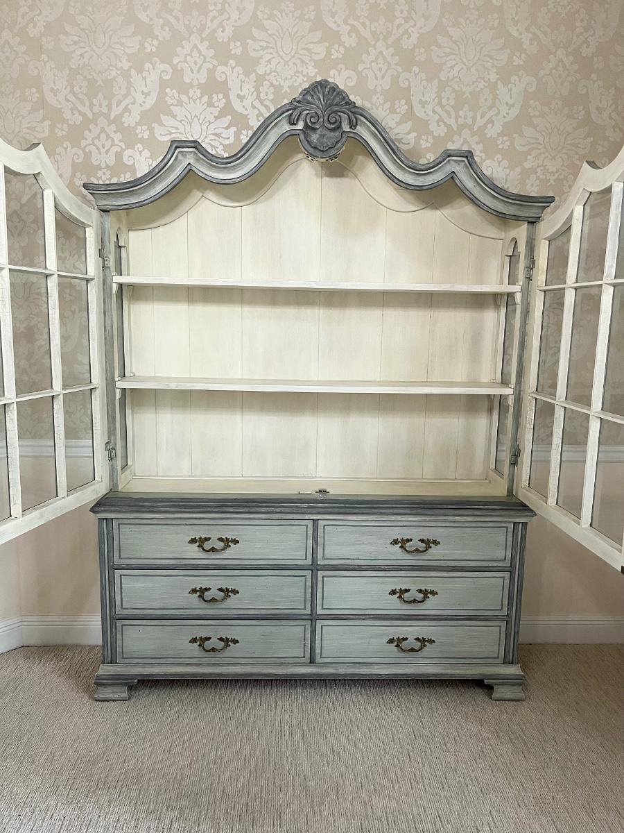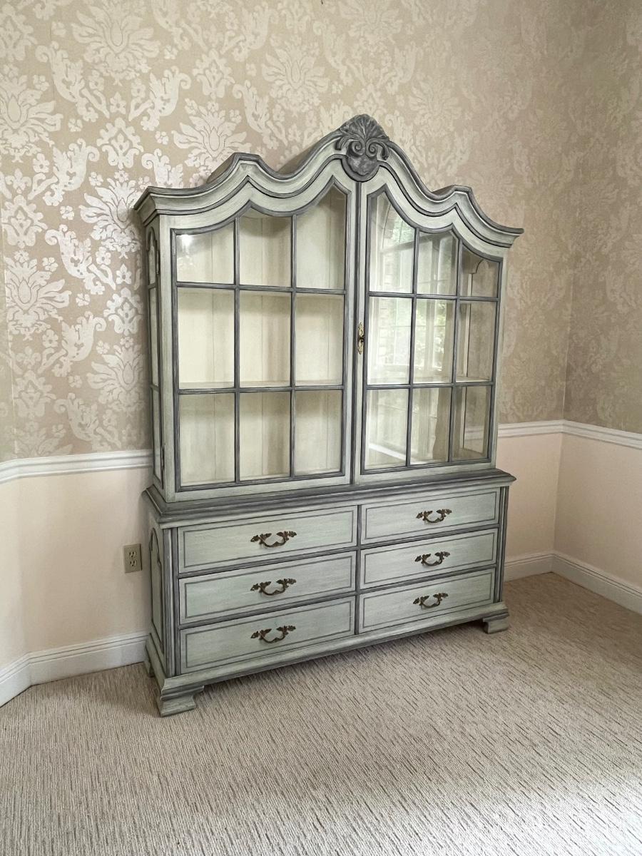 Solid Wood Distressed Pale Green China Cabinet