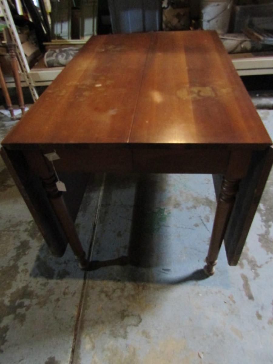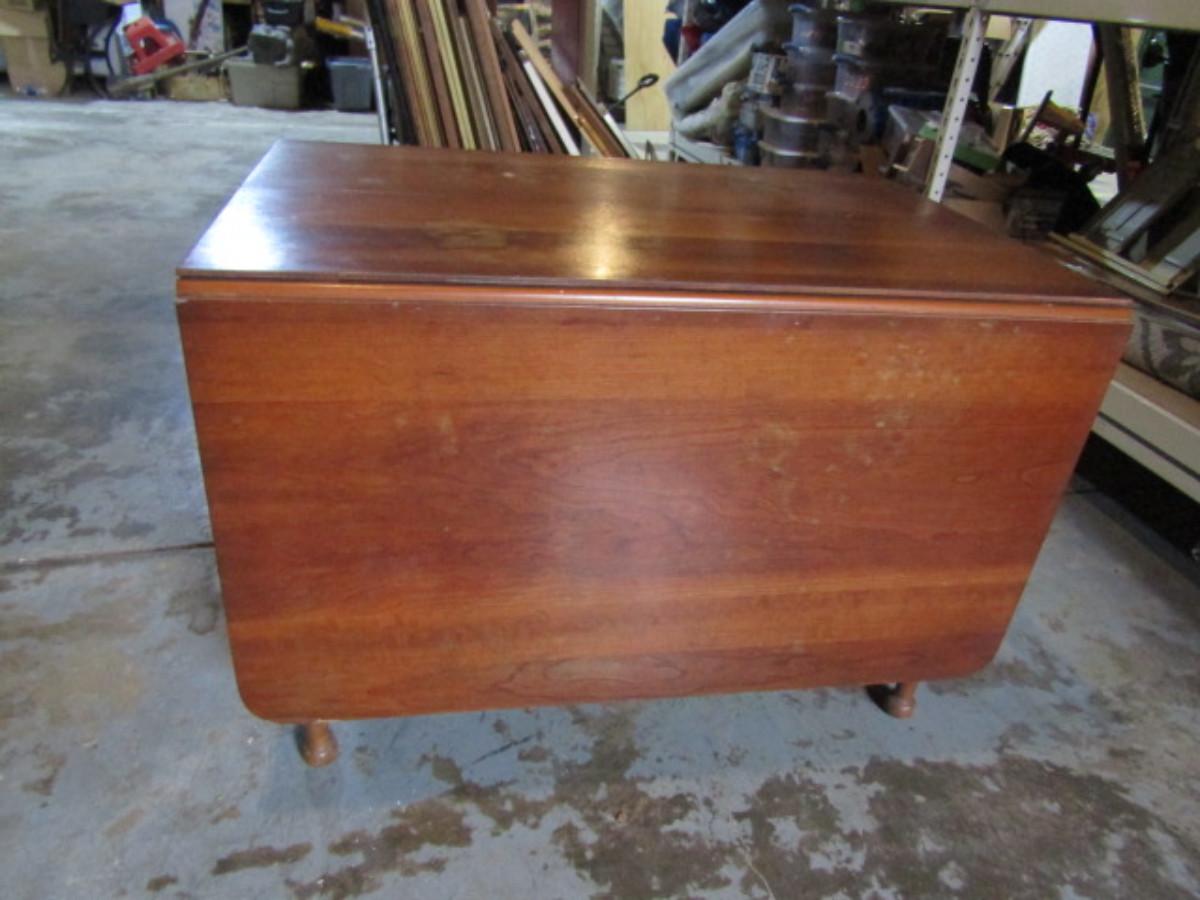 Solid Wood Double Drop Leaf Gate Leg Table Made by Walter of Wabash- With Two Additional Leaves. Approximate Overall Dimensions: 48" Wide. With drop leaves down: 28" Long. Each drop leaf: 22 1/2". Each additional leaf (2 available): 12".