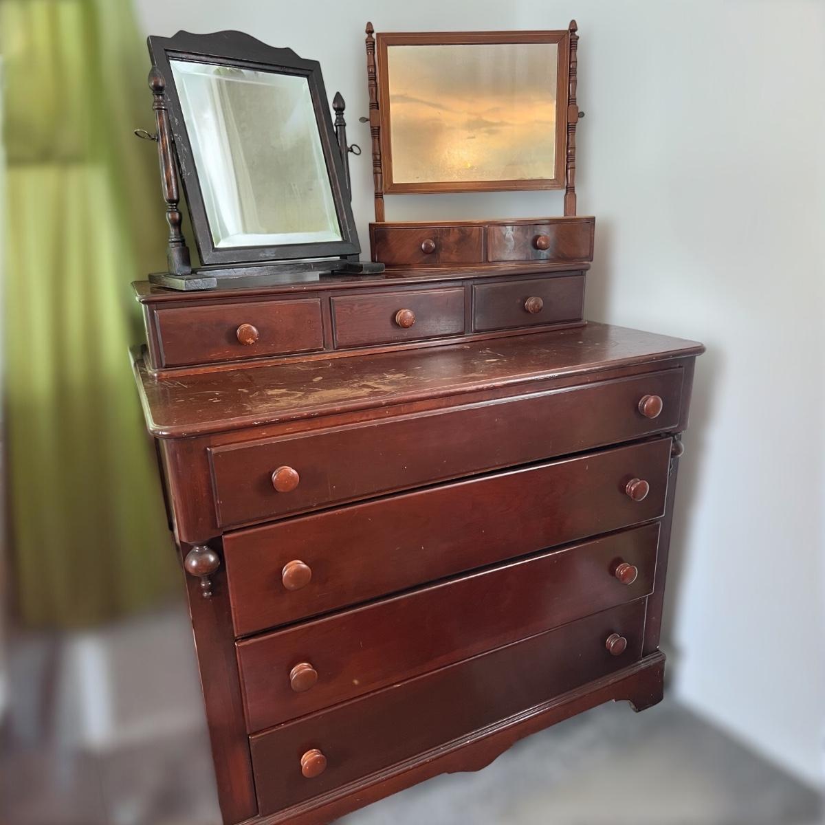 4 Pc. Lot - Solid Wood Dresser, Separate 3 Drawer, 2 Shaving Mirrors