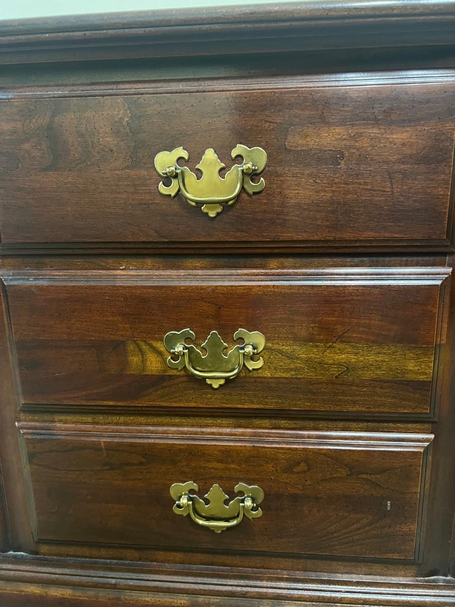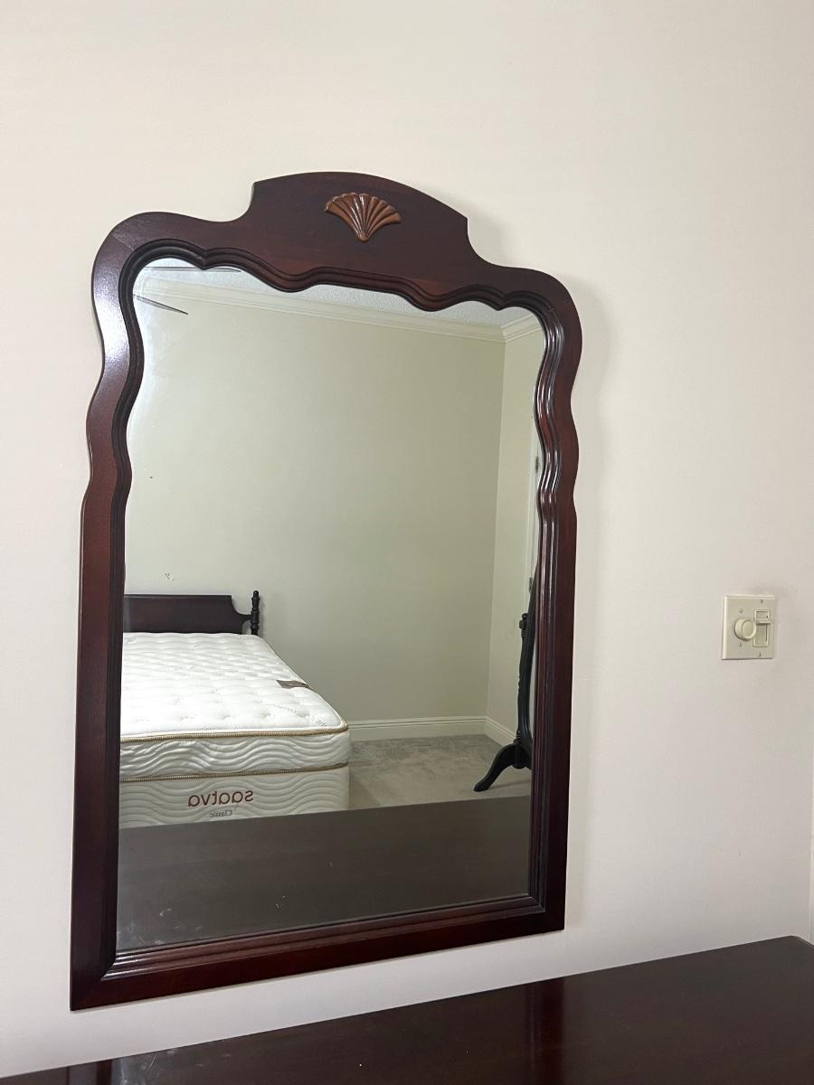 This furniture is heavy! Solid wood dresser has 9 drawers measures 33 inches tall, 60 inches long and 19 inches deep. Mirror measures 50 inches tall and 29 inches wide. Matching nightstand measures 26 inches tall, 23 inches wide and 16 inches deep.