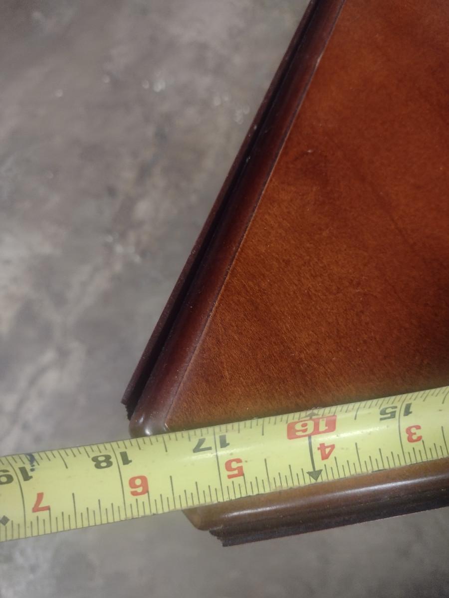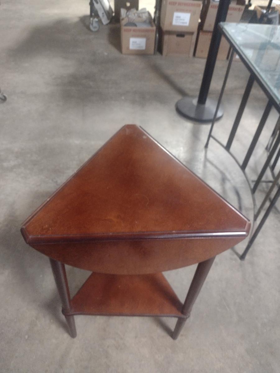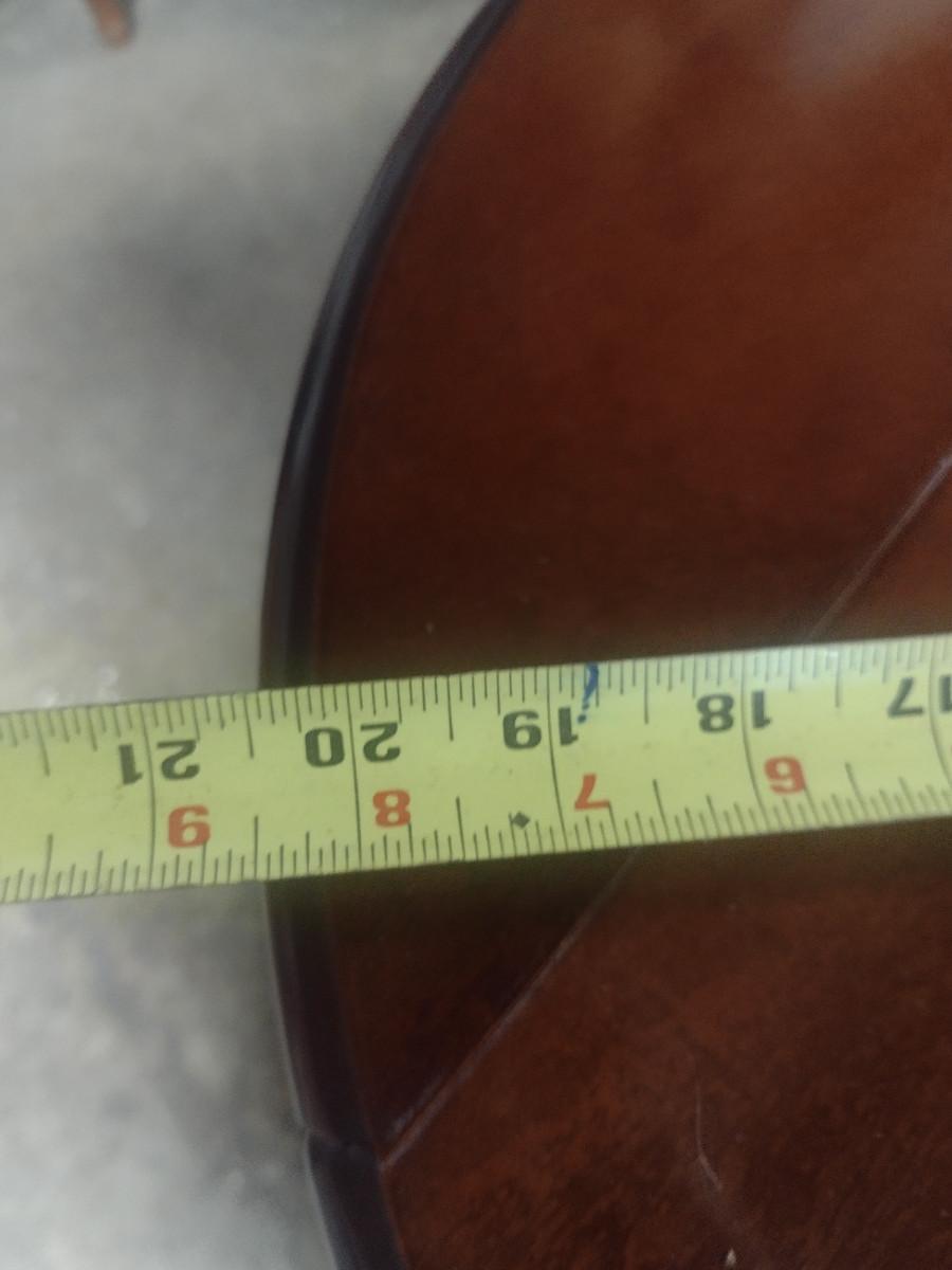 Solid Wood Drop Leaf Accent Table with Stretcher Shelf. With leaves up= approx. 20 1/2" in diameter.