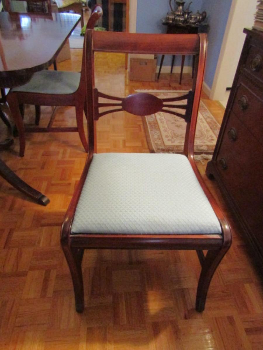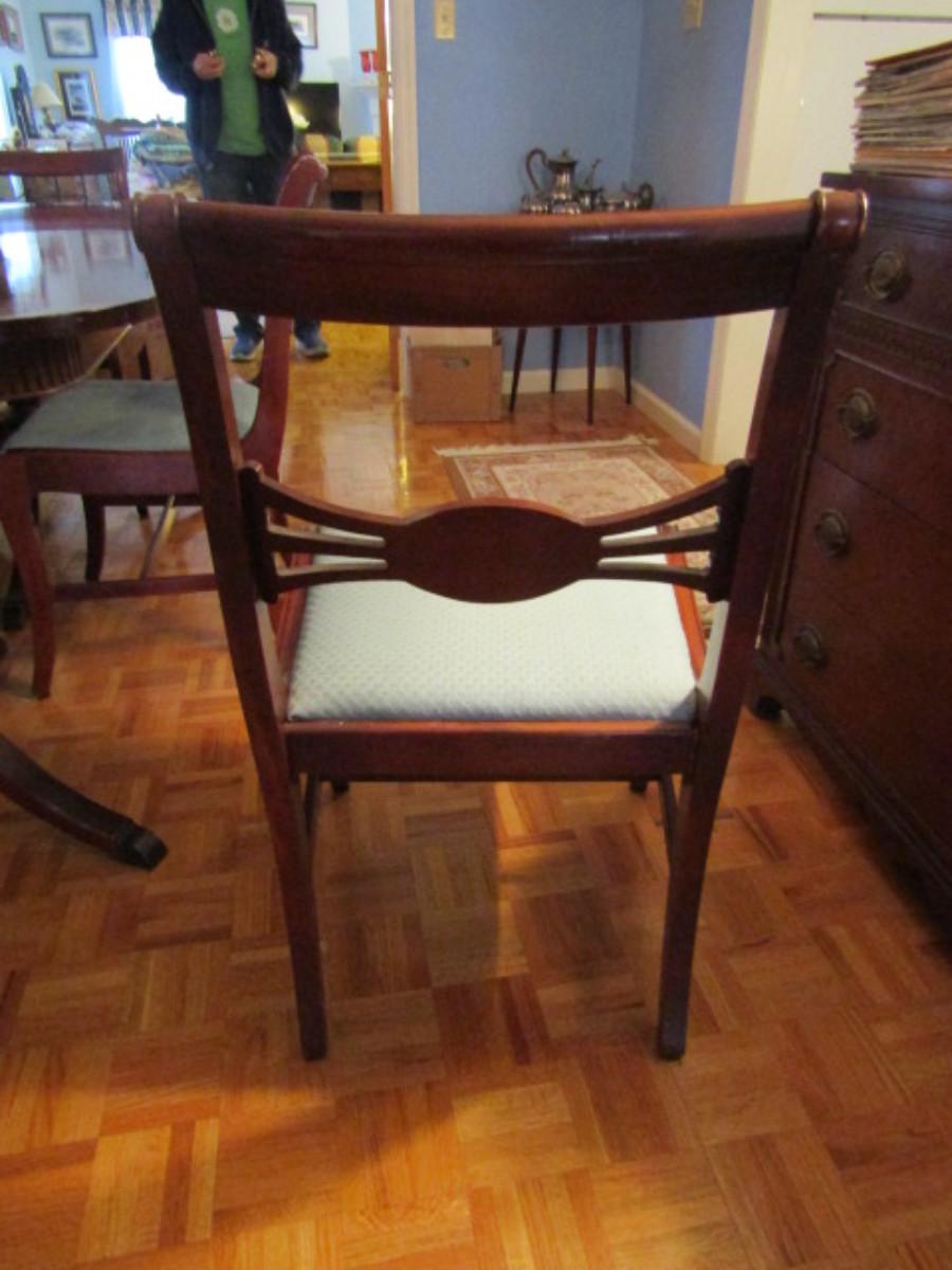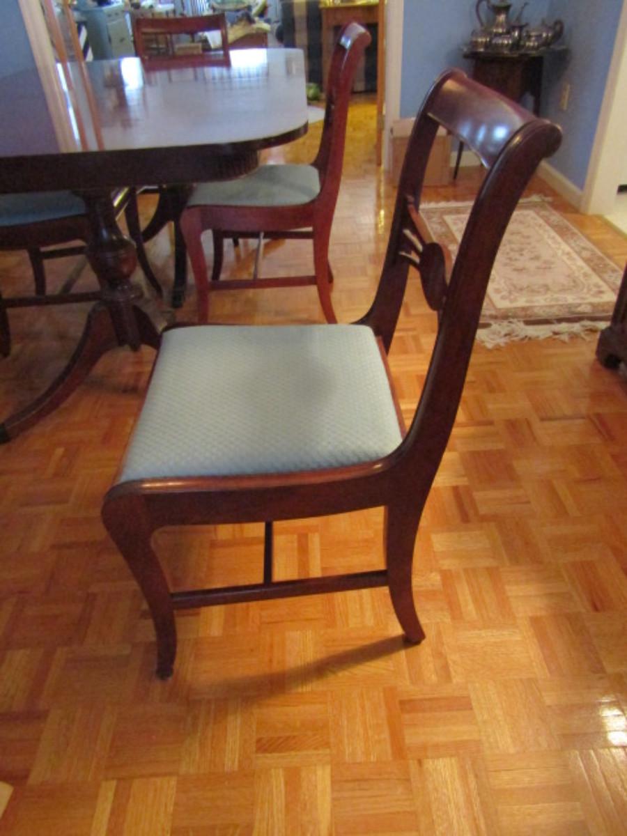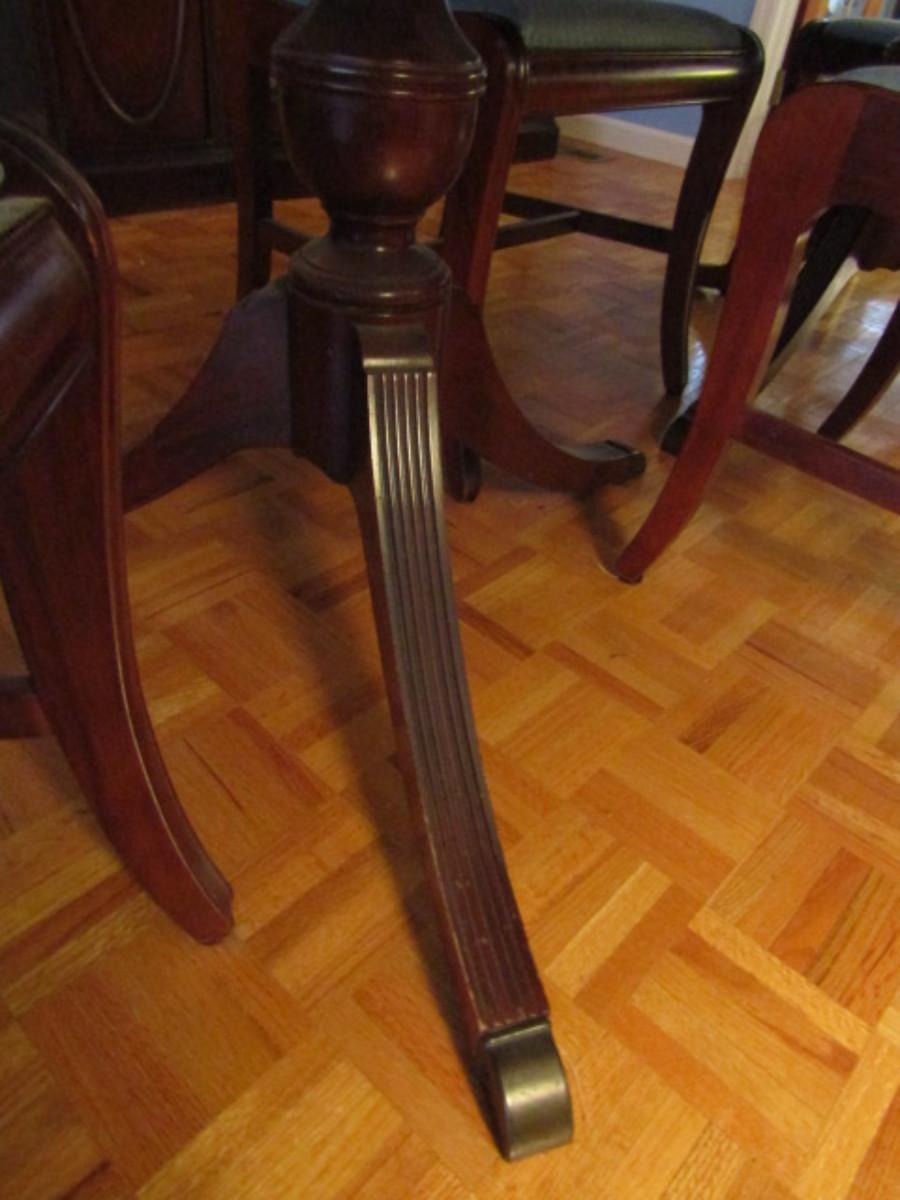 Solid Wood Duncan Phyfe Style Dining Table and Upholstered Chairs- Maker Not Marked