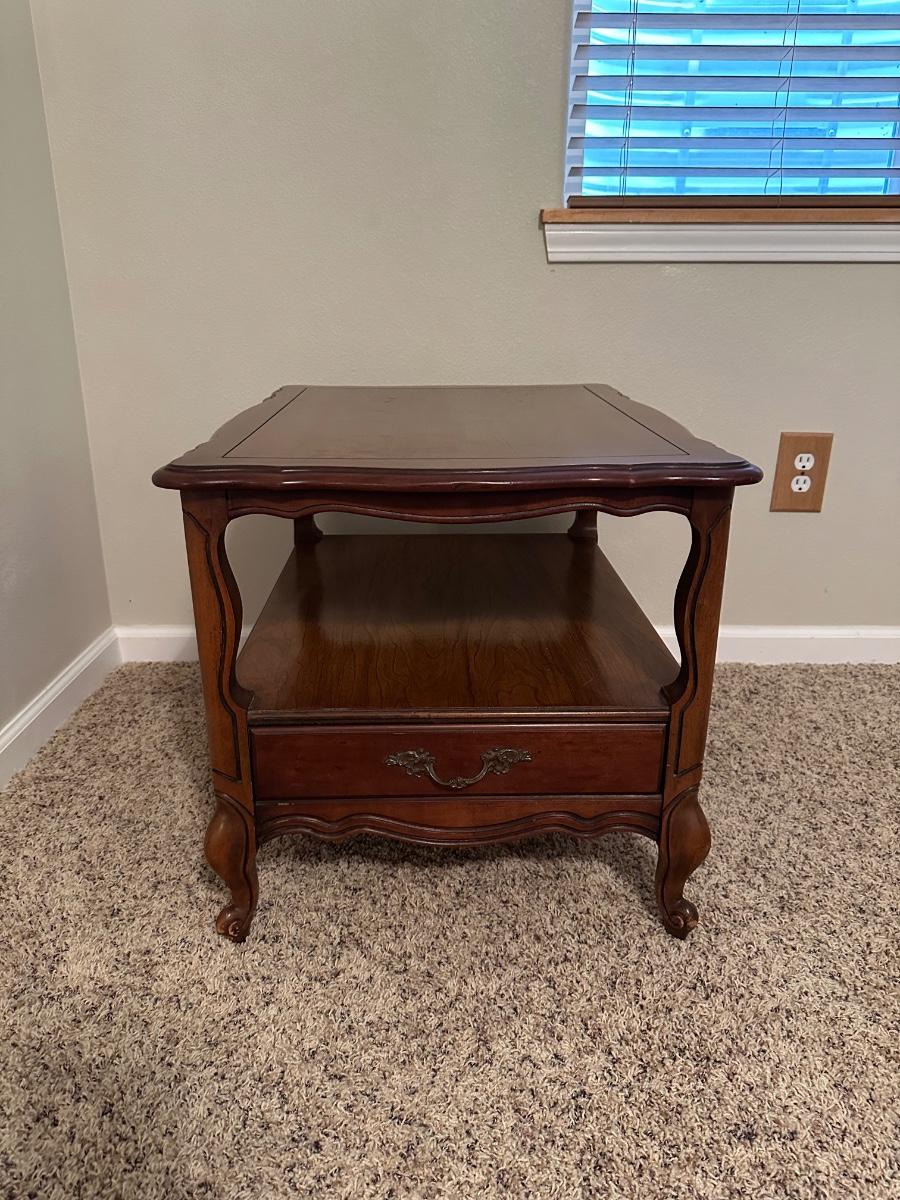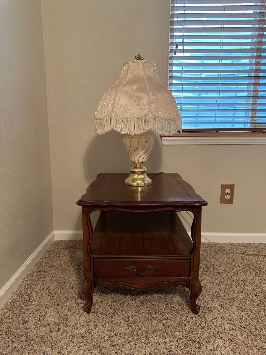 SOLID WOOD END TABLE WITH TABLE LAMP
