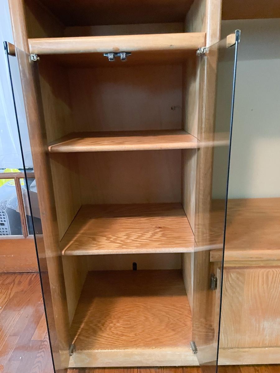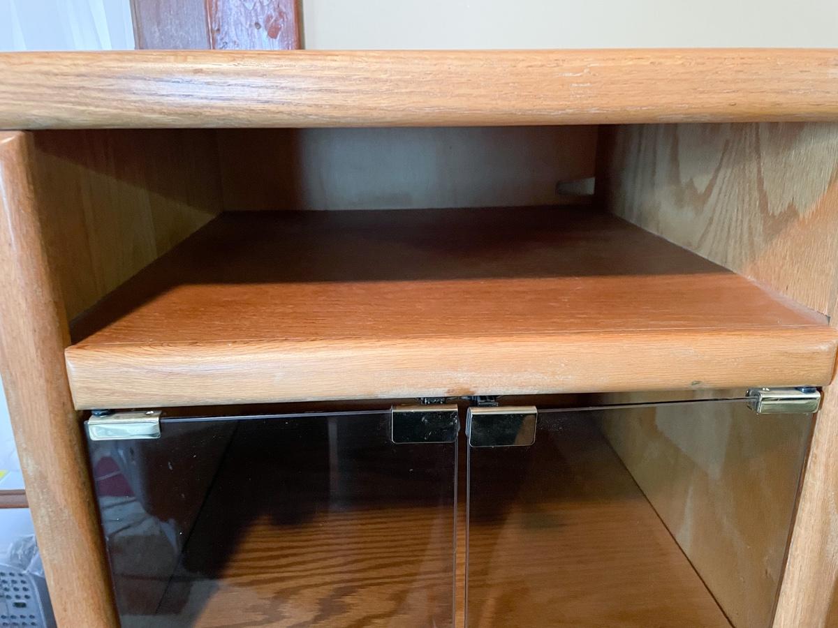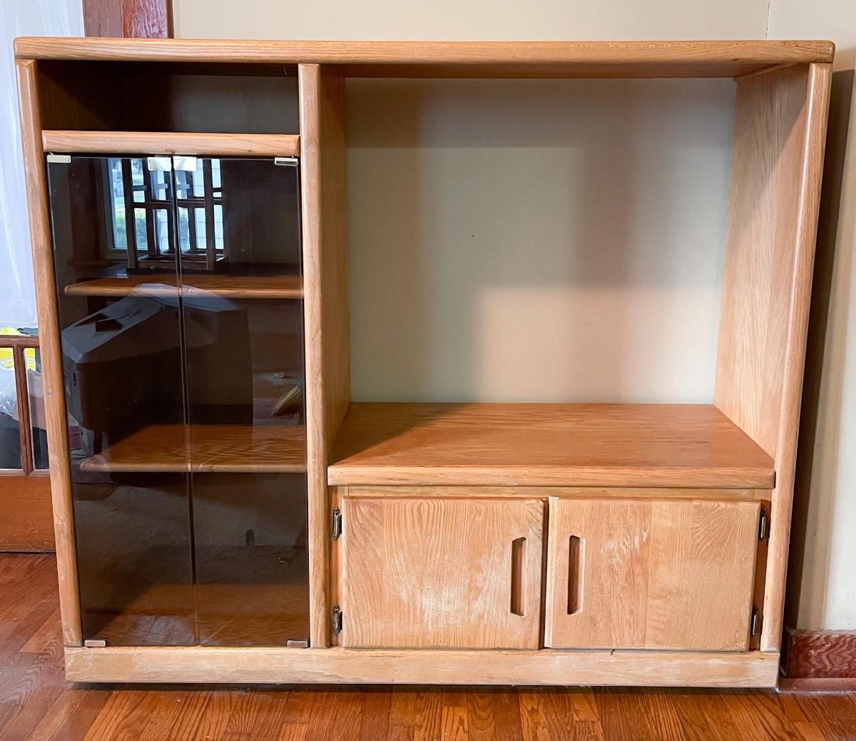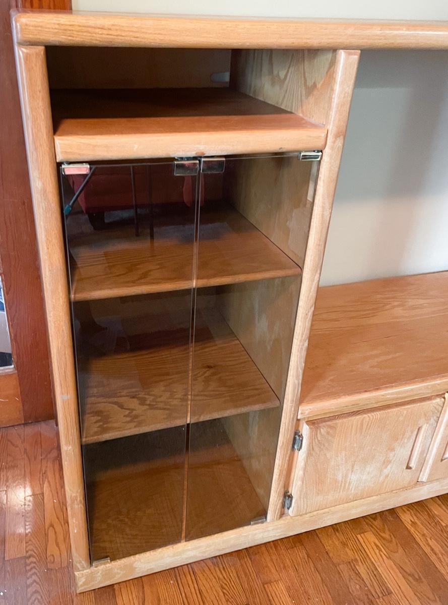 SOLID WOOD ENTERTAINMENT CENTER W/ GLASS DOORS