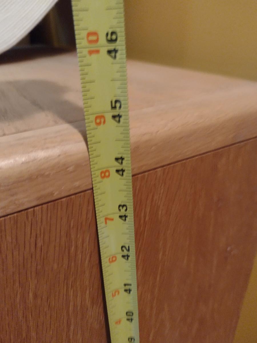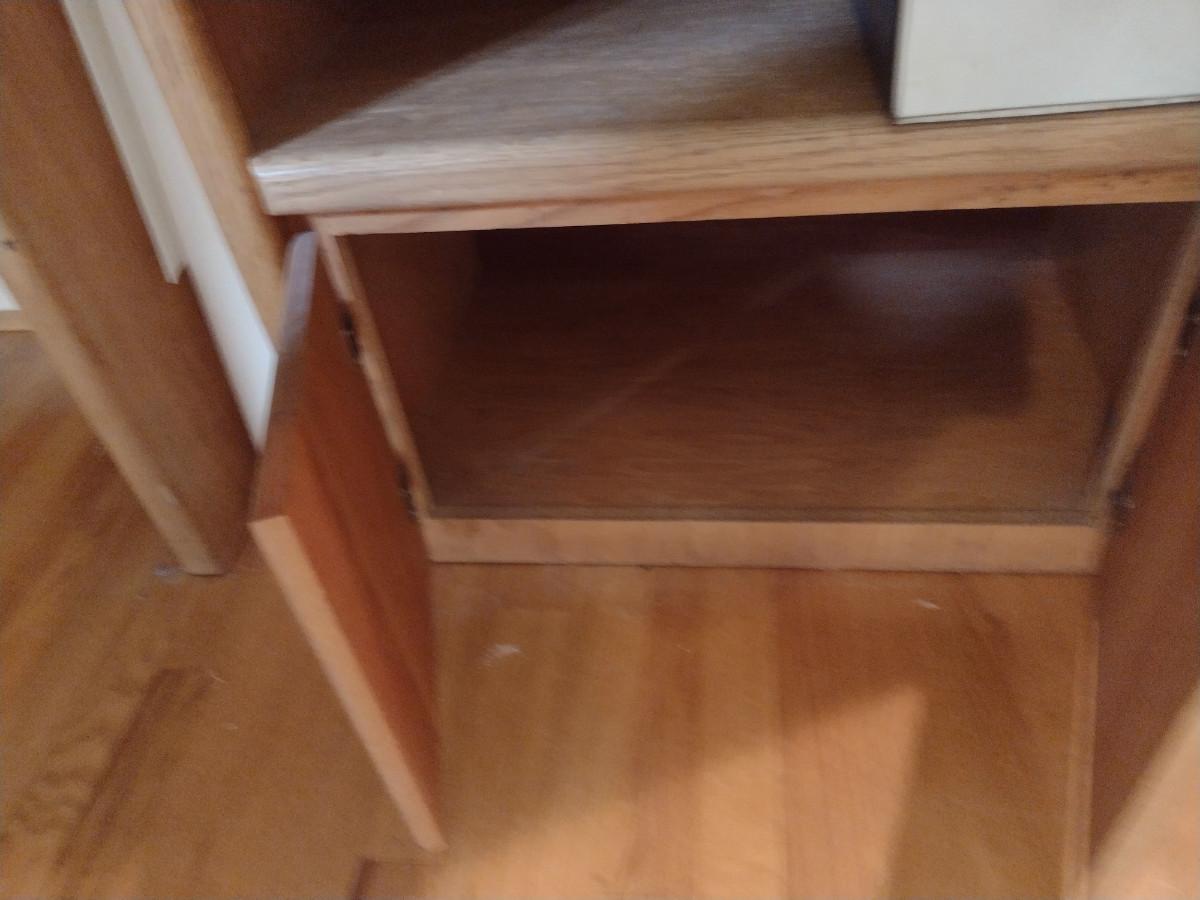 Solid Wood Entertainment Stand. Item measures approx 25 3/4" wide, 16 1/2" deep, 44 1/2" tall. No contents included.