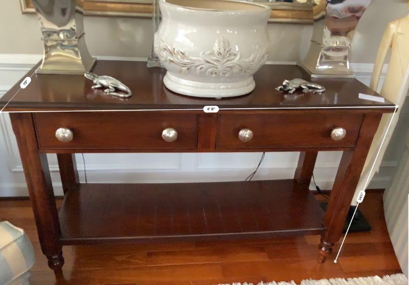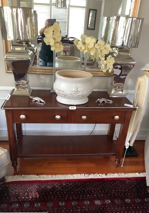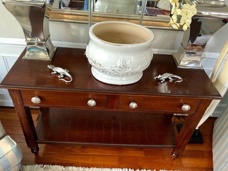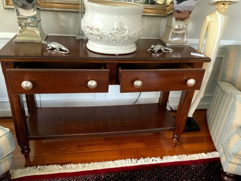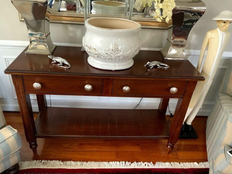 Entry table, server, buffet side or console table belongs in any room. Accented with beautiful silver knobs to add class and elegance.