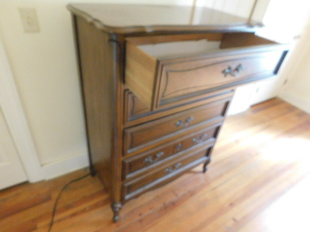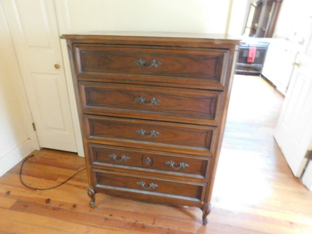 Solid Wood Five Drawer Dresser expect some scratches and wear. Some smoke odor