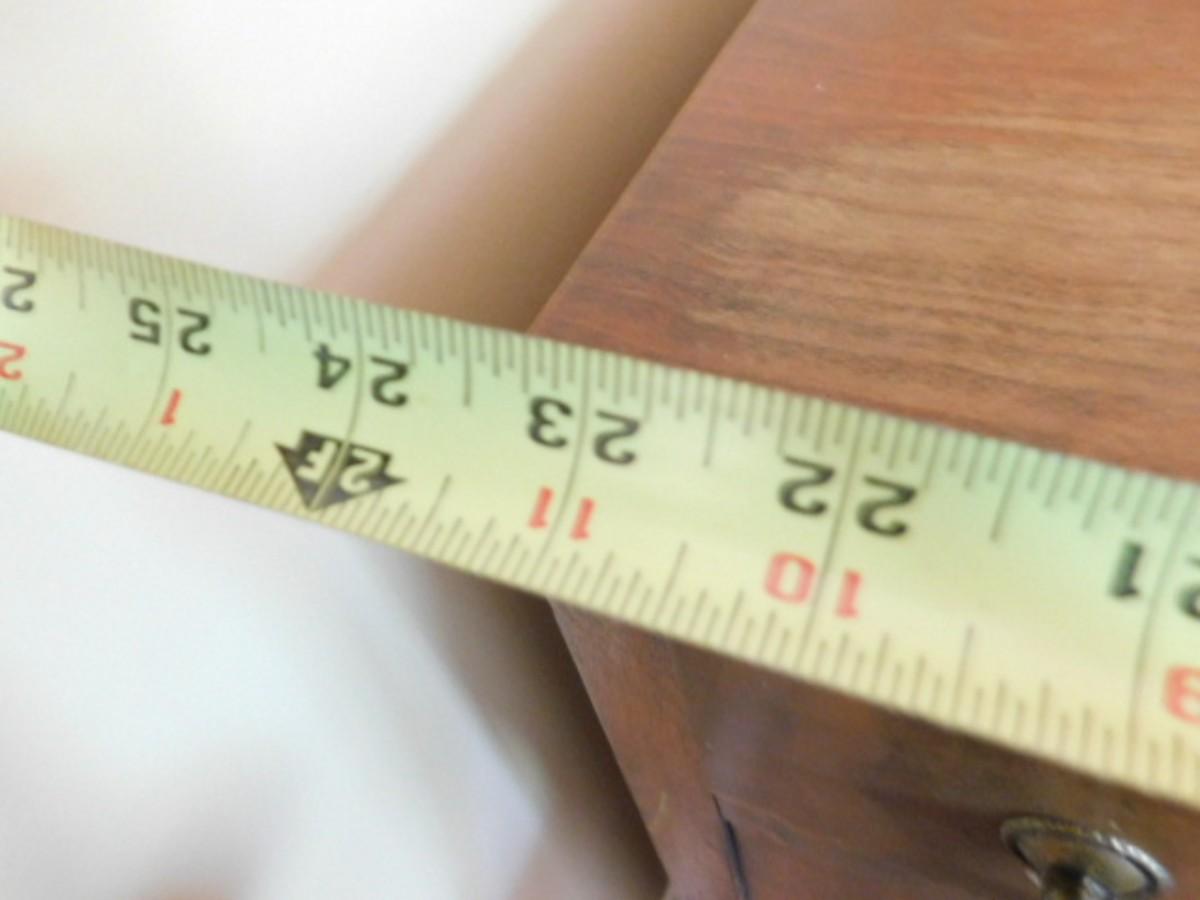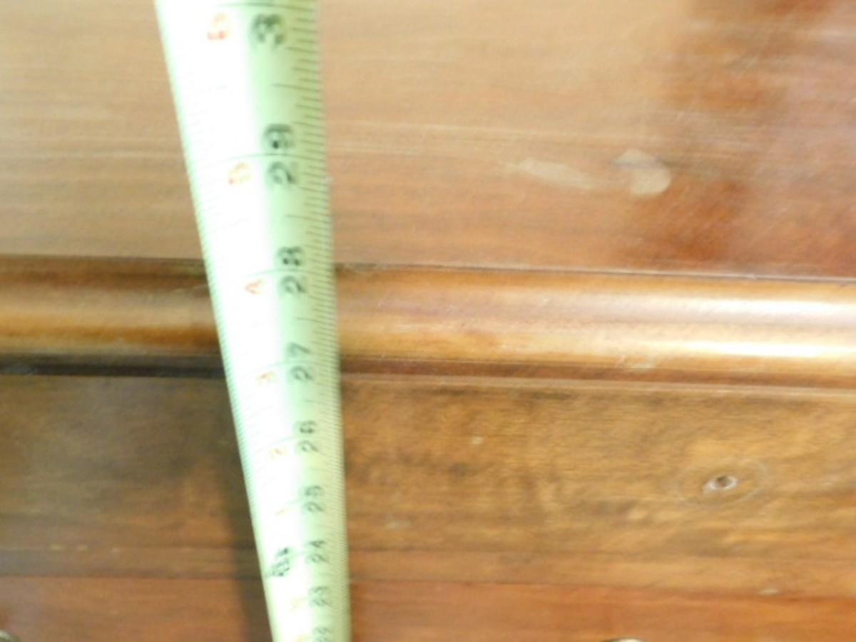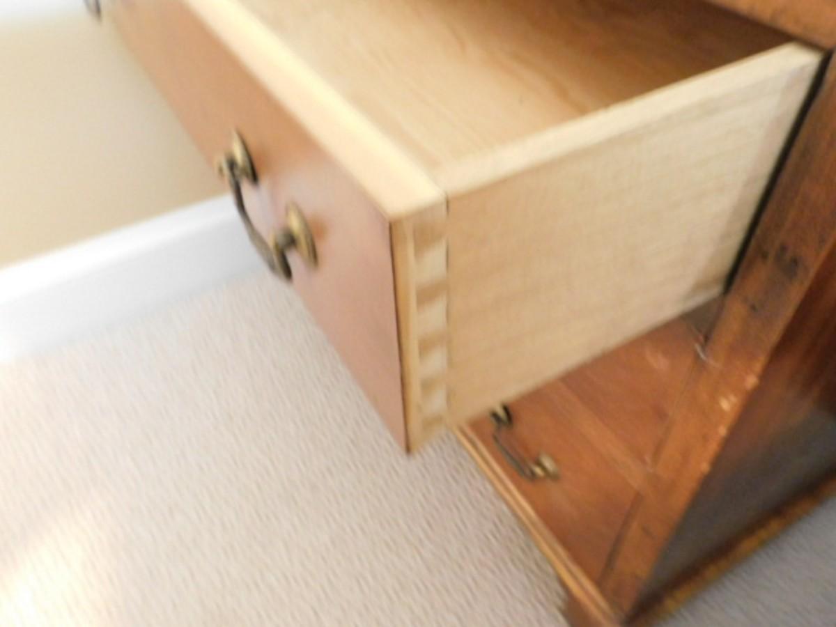 Solid Wood Four Drawer Side Dresser. Has some scratches and wear. One pull needs repair. Upstairs item. Bring help to remove.
