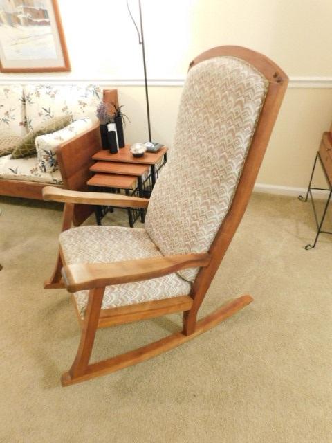 Solid Wood Frame Upholstered Seat and Back Rocking Chair