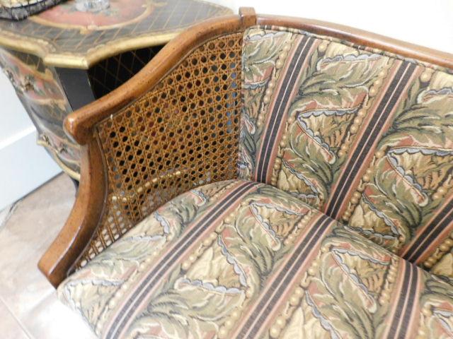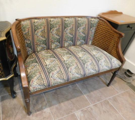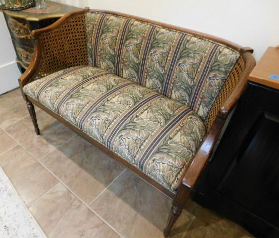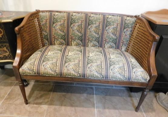 Solid Wood Frame Upholstered Settee with Cane Wings 44"