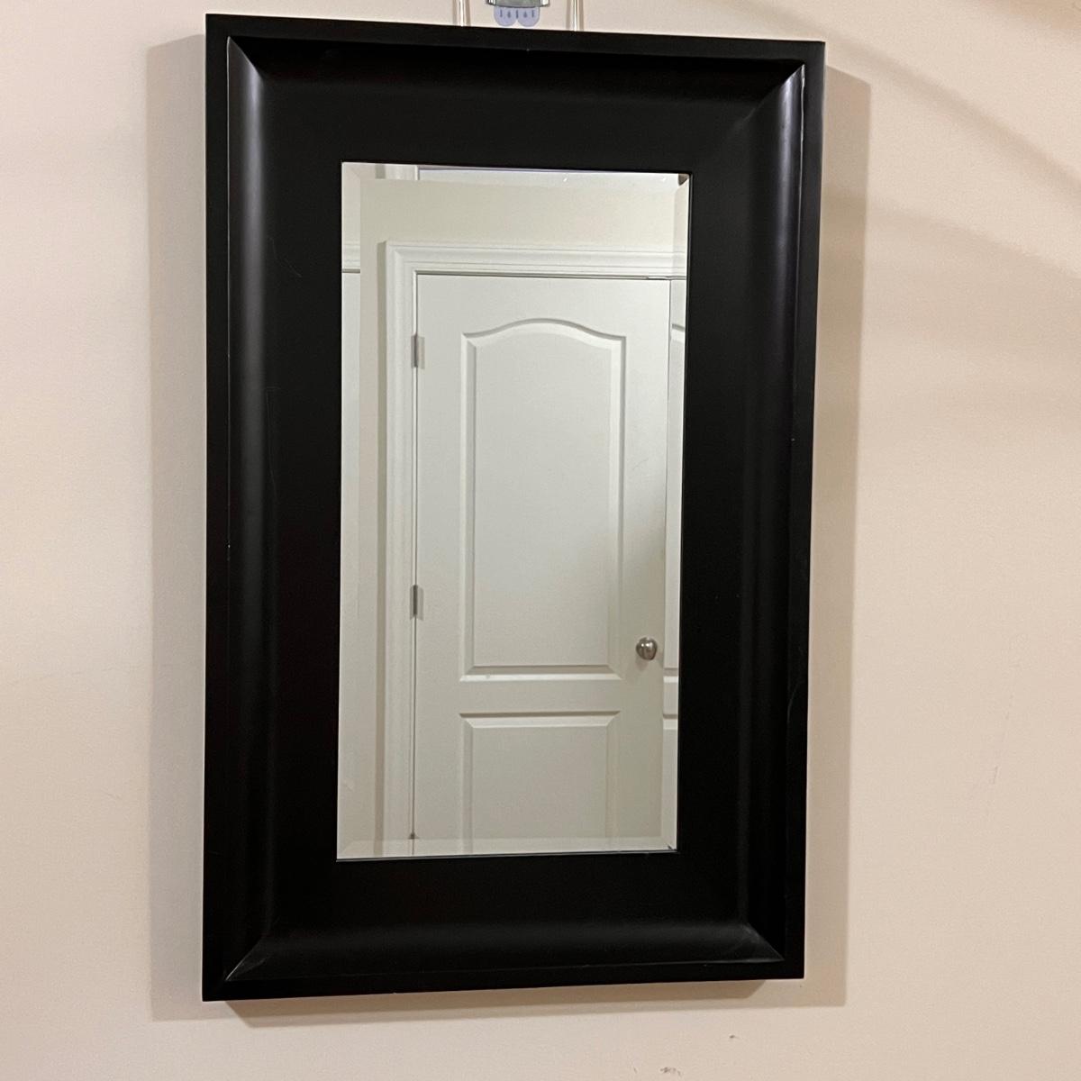 19.5" x 31.5" Molded wood frame in black, has heavy duty hanging hardware.
