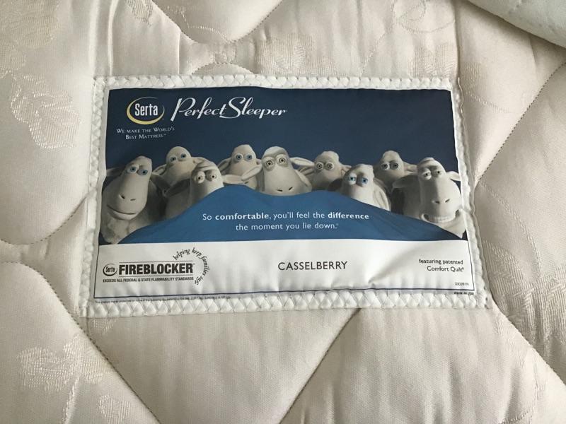 Beautiful condition Full Bed with Nearly new Serta Mattress. Linens not included.