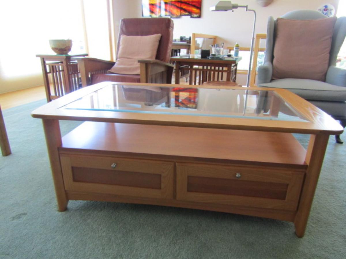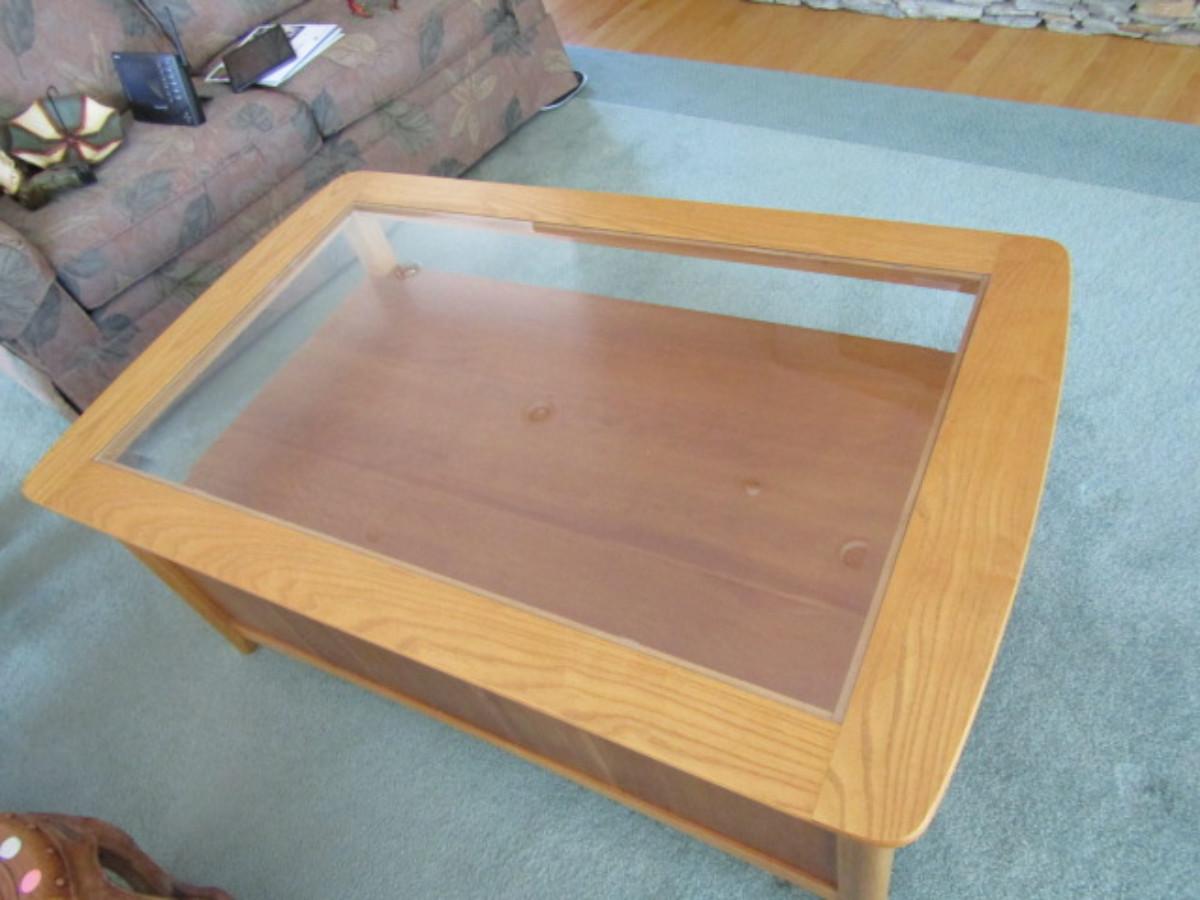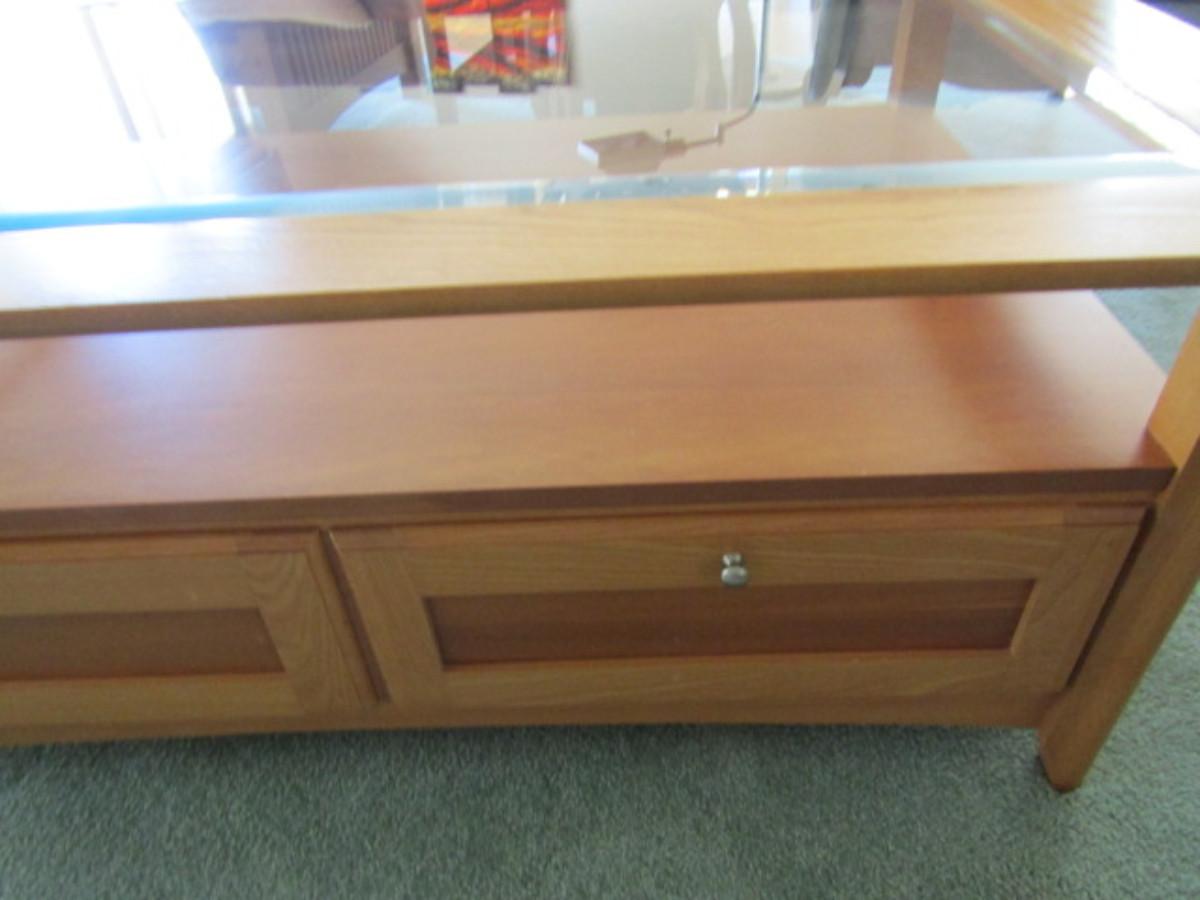 Solid Wood Glass Top Coffee Table with Storage Drawers- Approx 48" x 30" x 20" Tall