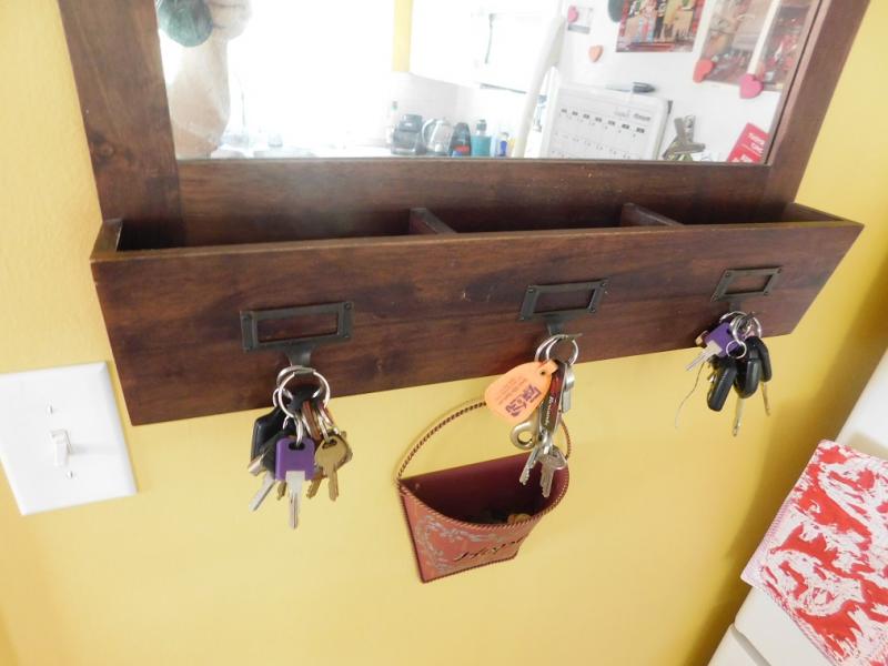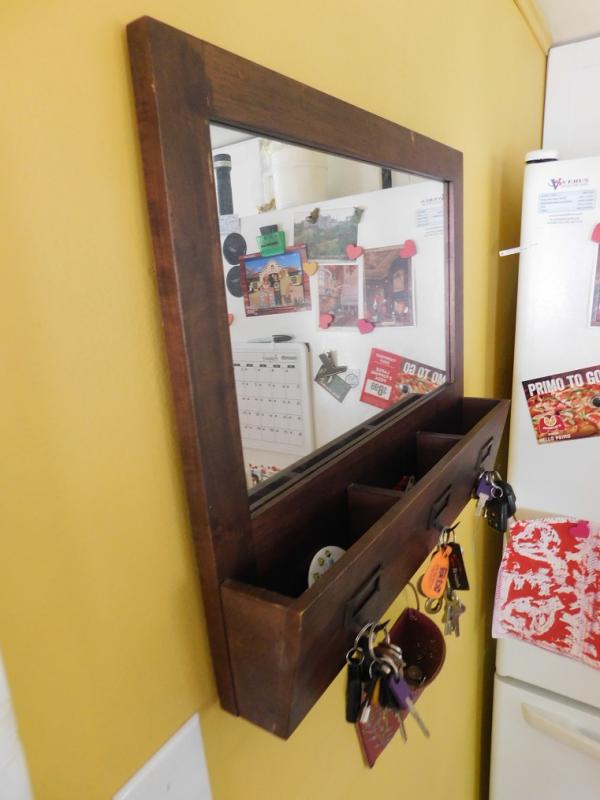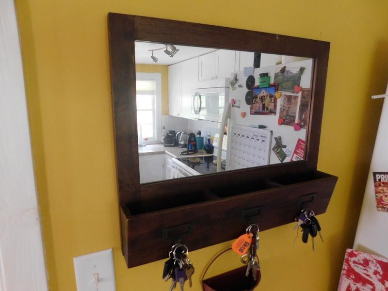 Solid Wood Hall Mirror with Catch Bins and Key Hooks