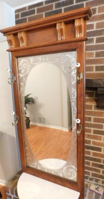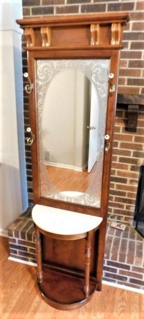Solid Wood Hall Tree with Mirror- 23 1/2" W x 12 3/8" D x 79" H main floor no stairs to driveway