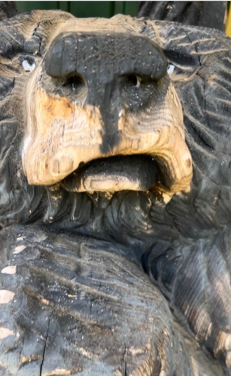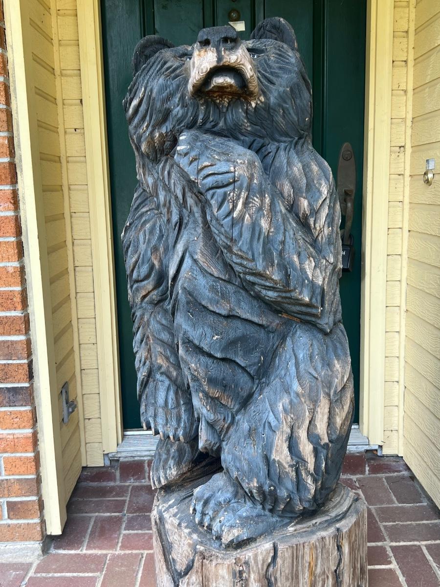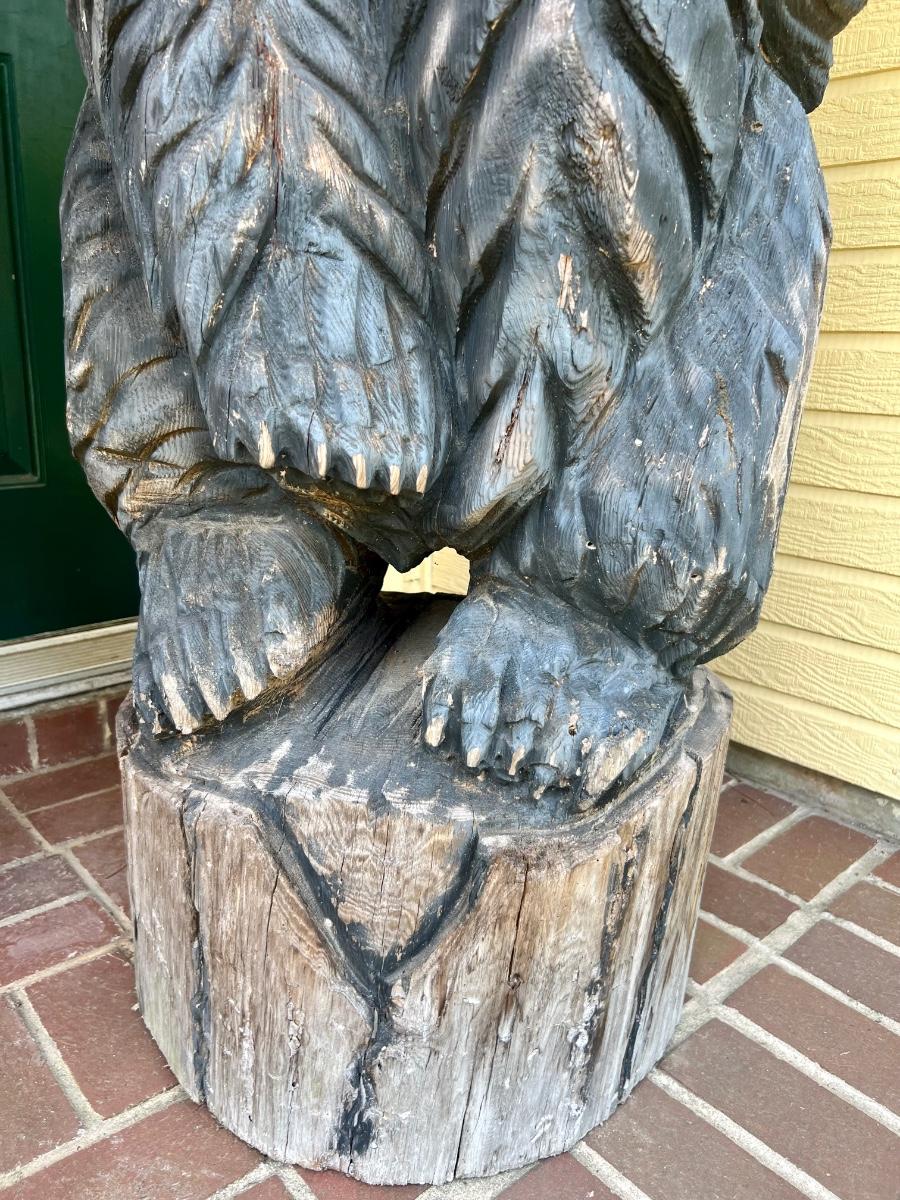 Solid Wood, Hand Carved Bear. Very heavy and solid. Will need a couple strong people to load. Approximately 56” tall and 23” round.