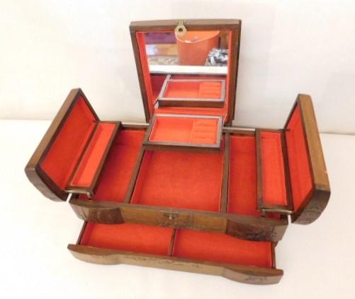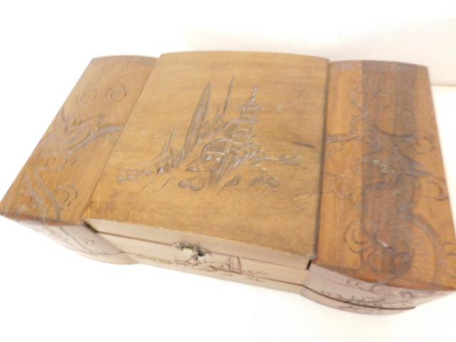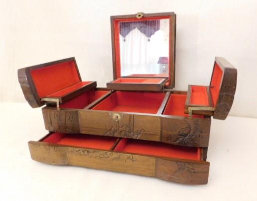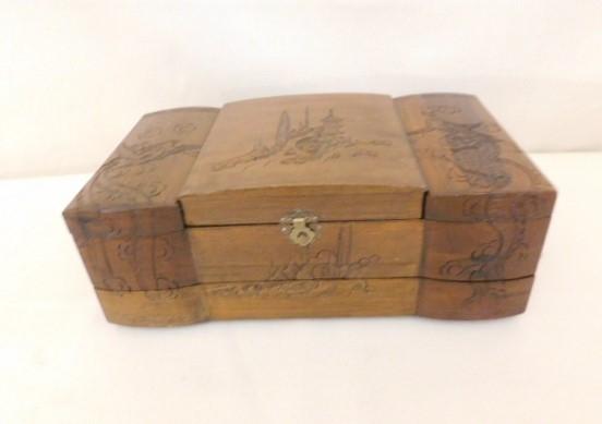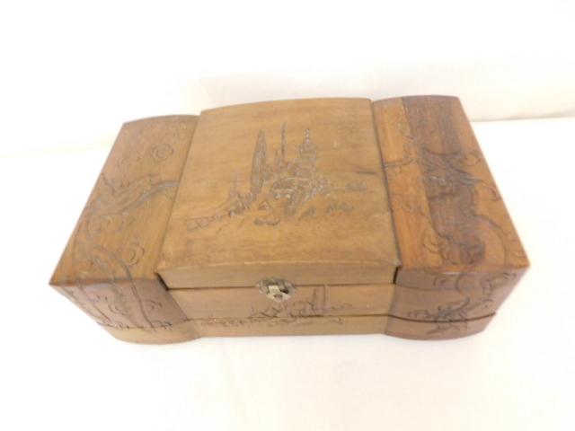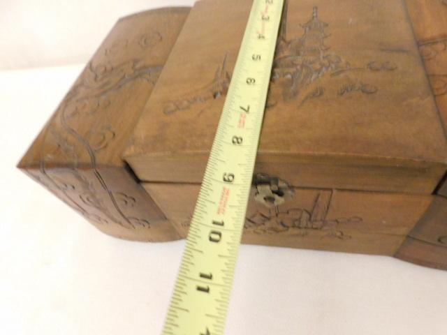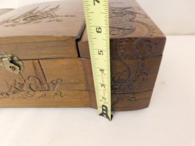 Solid Wood Hand Carved Design Jewelry Box 15"x8"x6"