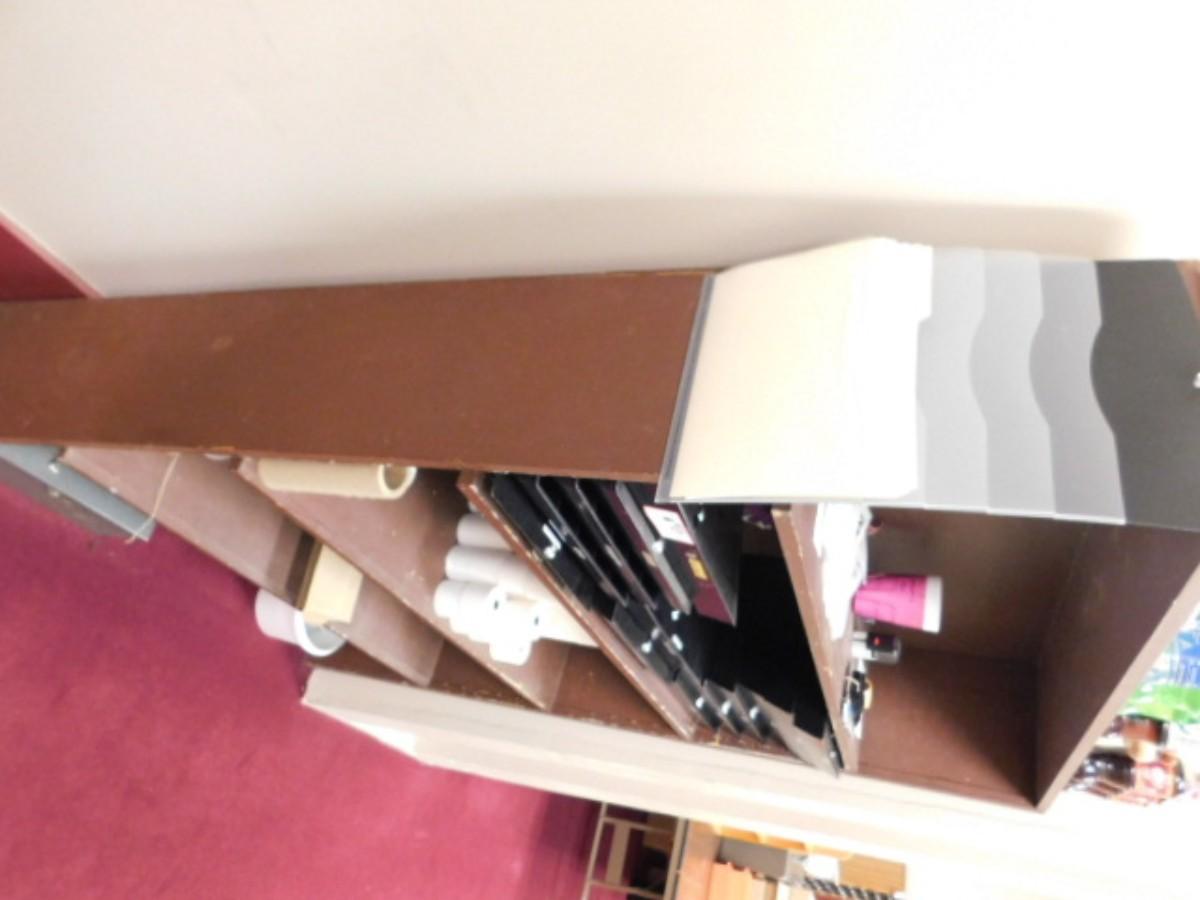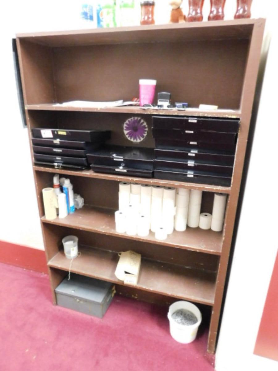 Solid Wood Hand Crafted Large Storage Shelf (No Contents) Expect some wear or scratches to finish. Shipping option available via freight or local mover at Buyer's expense. Buyer must have all shipping scheduled within the stated dates and times of pickup. Recommended local mover is Beaty Bros. Moving 828-201-2982