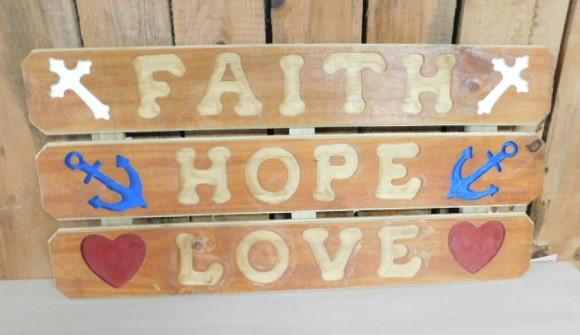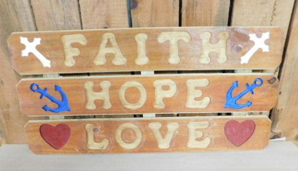 Solid Wood Hand Made Faith, Hope, Love Sign 36"x18"
