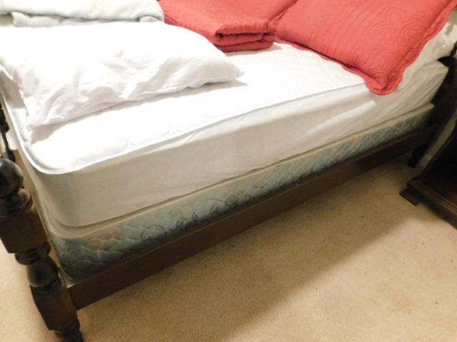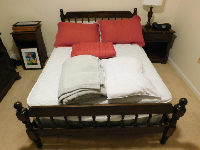 Solid Wood Head and Foot Board Full Sized Bed with Mattress Set and Bedding