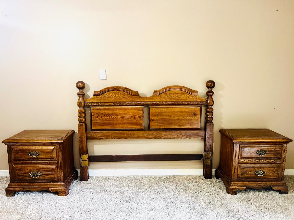 Solid Wood Queen Size Headboard and Matching Night Stands
