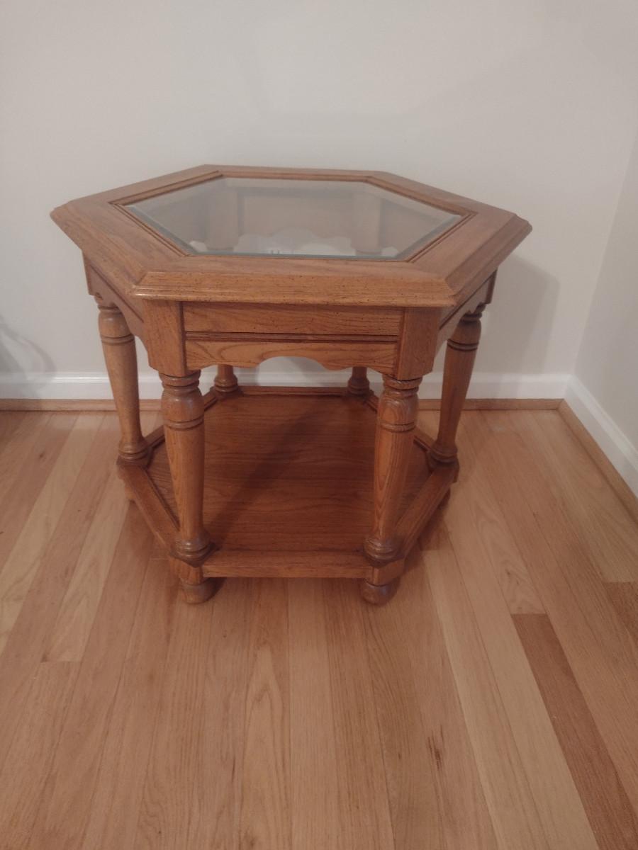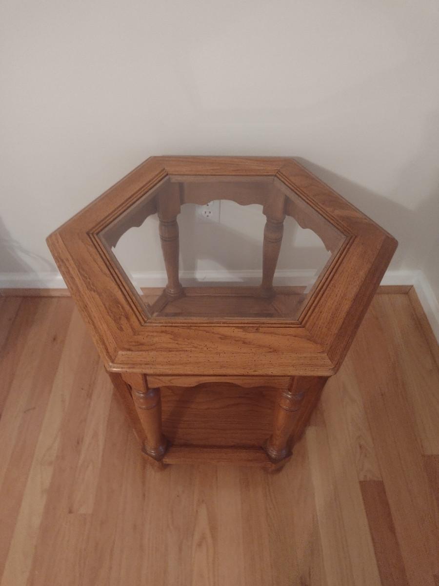 Solid Wood Hexagonal Side/Accent Table with Glass Insert- Approx 24" in Diameter